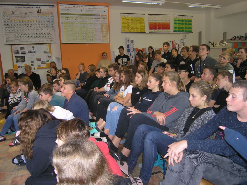15. října 2019 shlédli žáci 8. a 9. ročníku motivační prezentaci chemických pokusů Podivuhodná chemie.