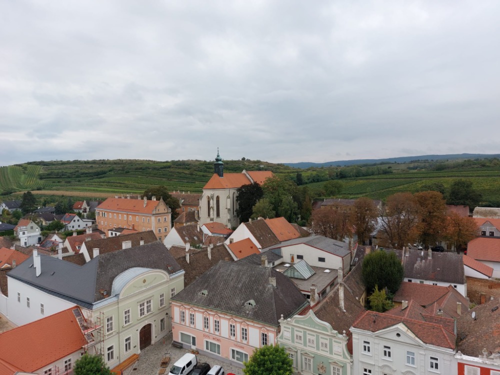 Další část výletu žáci strávili v centru Retzu. Zde vystoupali 128 schodů na radniční věž, kde si užili krásný výhled na všechny strany. Protože nebyla mlha, byla vidět i naše Pálava. Poté vyplnili pracovní list vztahující se k náměstí a došlo samozřejmě i na nákup něčeho dobrého.