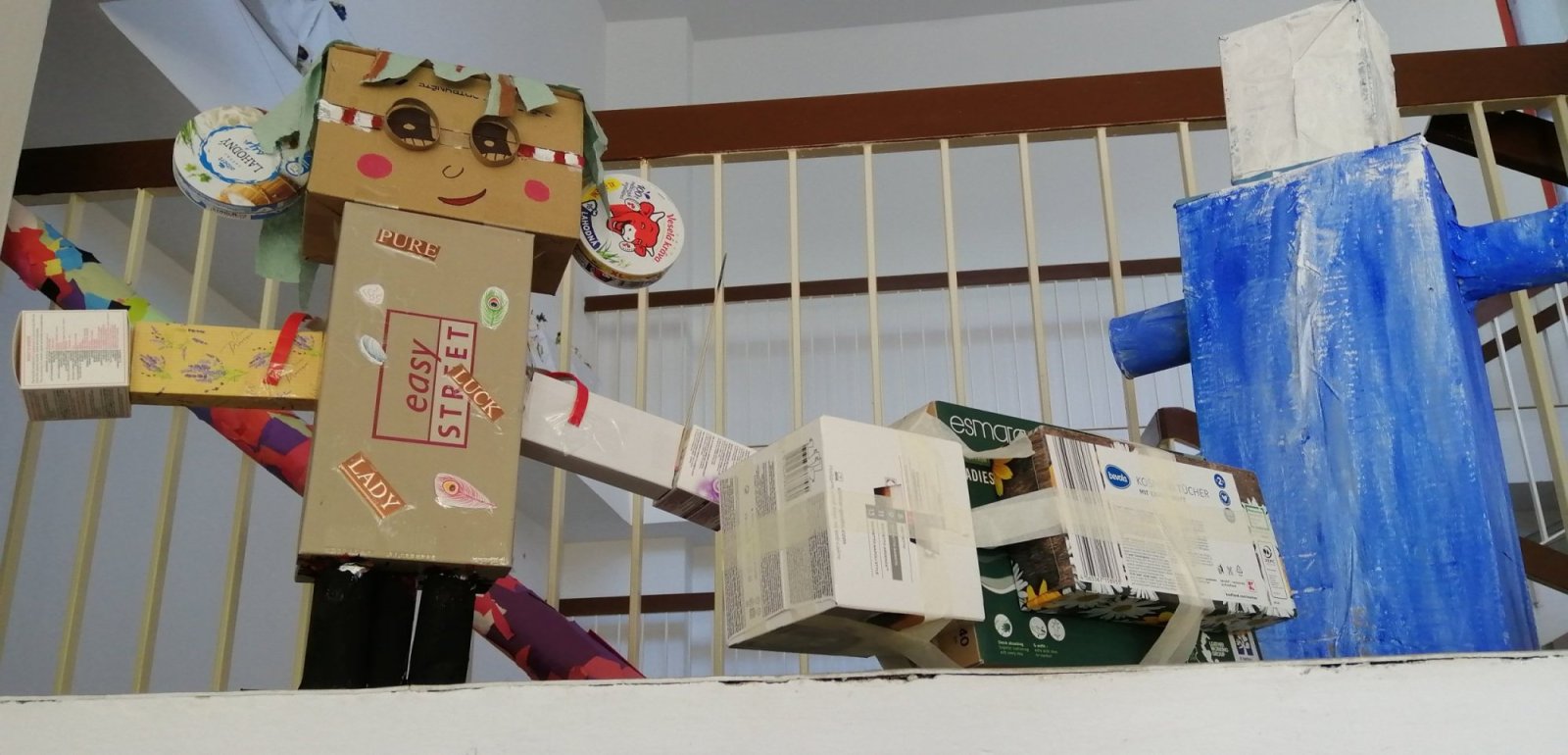 Třída 6.B v rámci projektu UNESCO v letošním školním roce zpracovala téma: 100.výročí R.U.R Karla Čapka. Vyráběli ve výtvarné výchově a světě práce z odpadového materiálu, který si sami přinesli, roboty dle svých "náctiletých" představ. Na fotkách je vidět, že práce byla úspěšná a velmi je bavila.