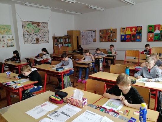 Žáci si vyzkoušeli testy se vším všudy – originální materiály z JŠ P.A.R.K. i stejný čas na vypracování jako u ostrých testů. Pro rodiče byl připraven info koutek, kde jim byly poskytnuty informace k ostrým testům a k dispozici byly také materiály a učebnice k nahlédnutí.