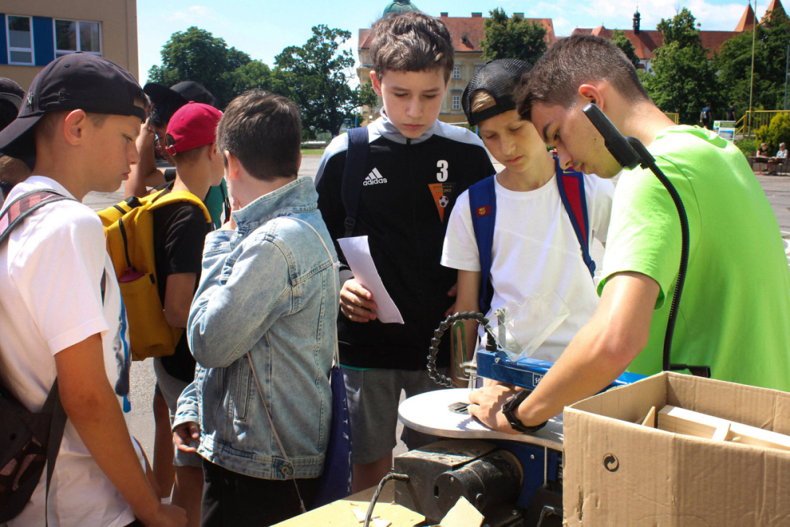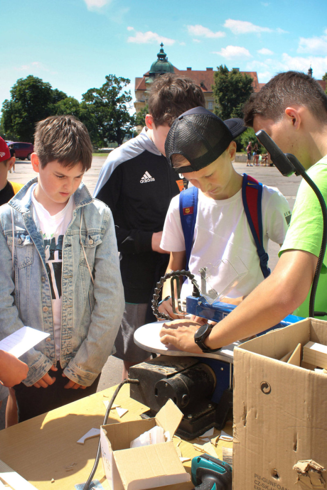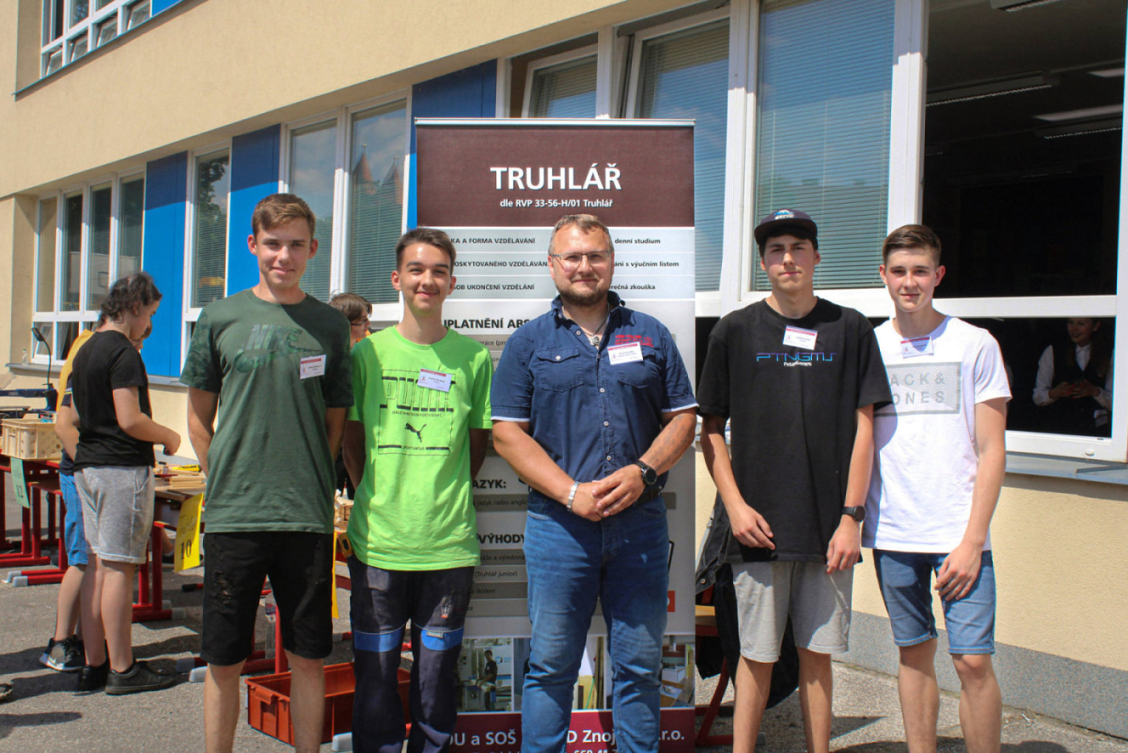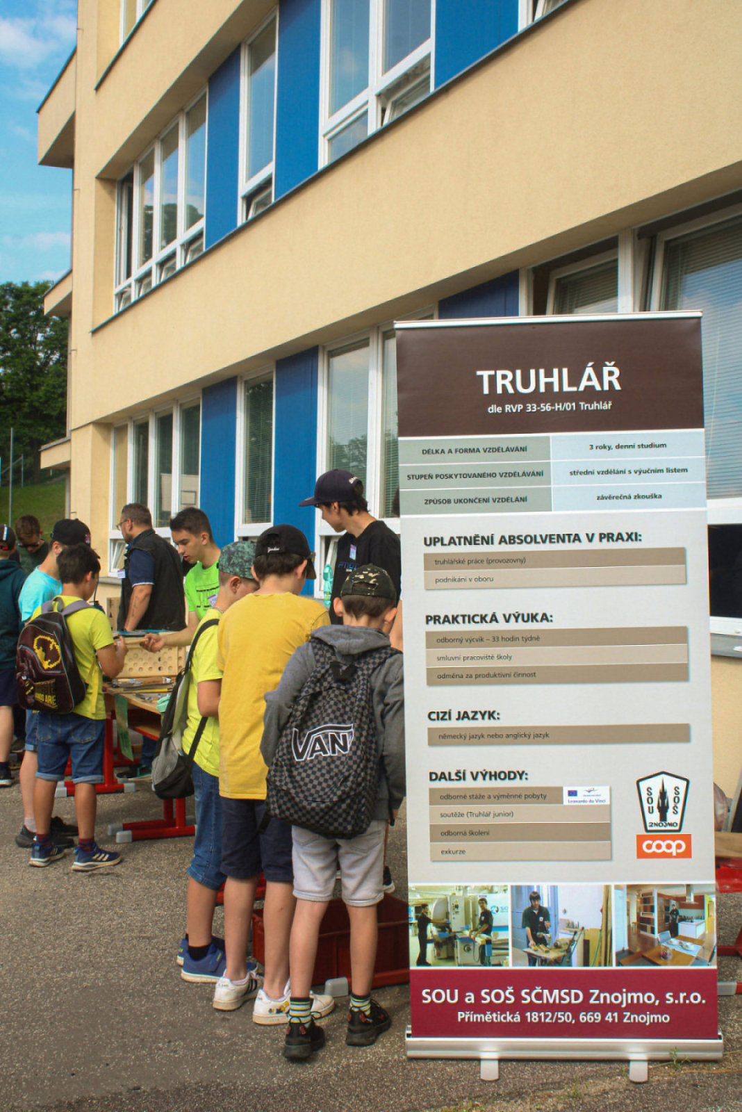SŠ technická Znojmo se při prezentaci svých oborů zaměřila na oblast robotiky, která je v současné době na vzestupu. Žáci tak dostali možnost například vyzkoušet si ovládat pohyb robota po barevně vyznačené cestě. Nezapomnělo se ani na praktické činnosti související s opracováním dřeva.