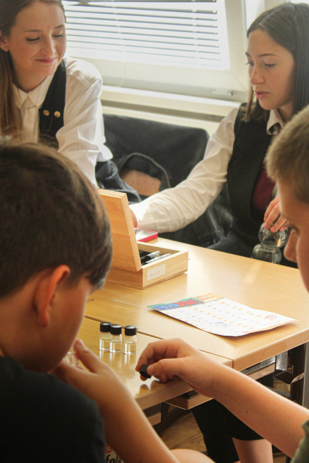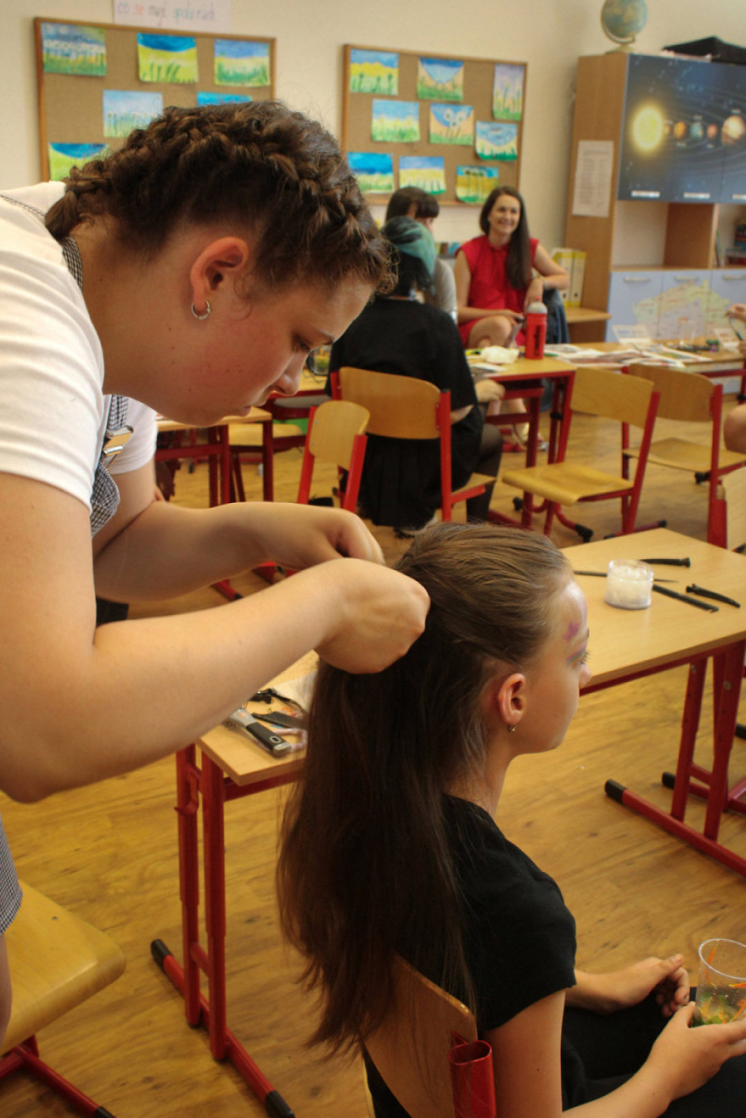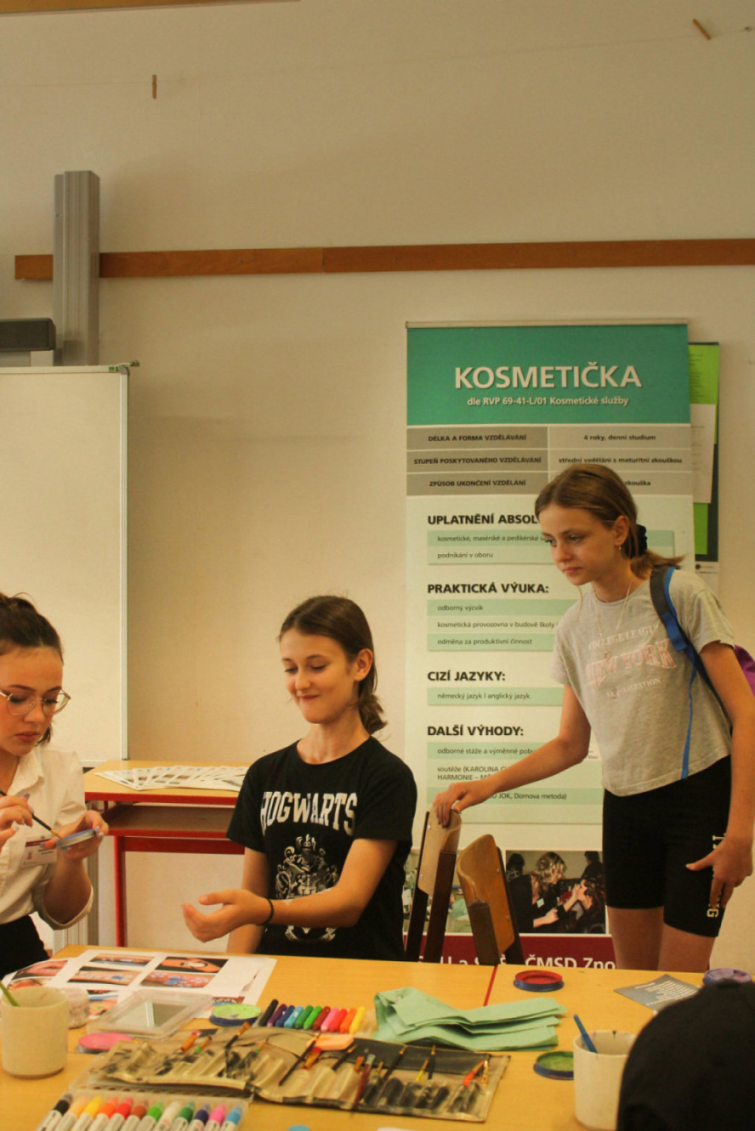 “Přímka” představila žákům obory Automechanik, Kadeřník, Kuchař-číšník, Prodavač, Truhlář, Kosmetička, Cestovní ruch, Grafický design a podnikání, Hotelový management a Sociální činnost. Žáci naší základní školy se tak prostřednictvím pečlivě připravených aktivit mohli seznámit s nezbytnými pracovními pomůckami jednotlivých prezentací, vyzkoušet si demontovat strojní části automobilu, naučit se skládat prostírání či zabalit dárek. V rámci oblasti cestování zavítali do mnoha turistických destinací, seznámili se s památkami typickými pro evropské metropole a svoje znalosti si ověřili formou zábavného kvízu. Oblíbenou aktivitou mezi chlapci bylo vyřezávání různých tvarů na elektrické lupénkové pile nebo počítačová 3D modelace. Děvčata zase ocenila malování na obličej, poznávání vůní či kreativní vytváření účesů.
