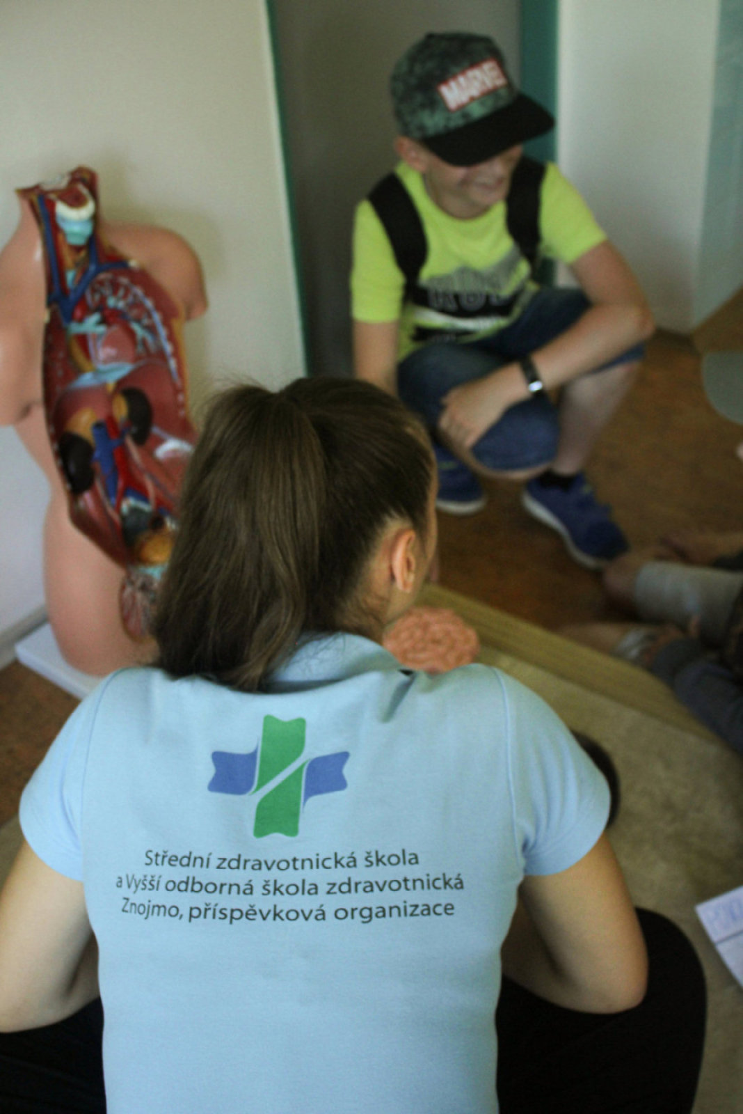 Na stanovištích SZŠ a VOŠ Znojmo si děti zblízka prohlédly torzo lidského trupu či model srdce. Dalším úkolem bylo sestavit puzzle lidského těla. Žáci se seznámili se správnými zásadami zubní hygieny, vyzkoušeli si poskytnutí první pomoci v případě zlomenin, základy obvazování a manipulaci s vakuovými nosítky.