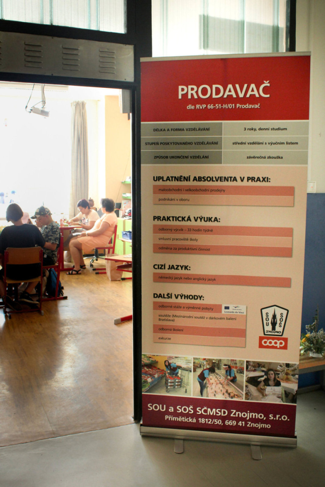 SOŠ Znojmo, Dvořákova zaujala žáky přistavením své techniky v podobě traktoru, který si mohli za doprovodu odborného výkladu důkladně prohlédnout. S velkým ohlasem se také setkala aktivita, při níž si žáci vyzkoušeli ručně podojit krávu Amálku. Mnozí z nich byli překvapeni, o jak nelehký úkol se jedná. Cukráři se pak s dětmi zabývali modelováním z marcipánu, u zahradnického oboru jsme měli možnost vytvořit si krásné dekorační vazby z čerstvých květin.