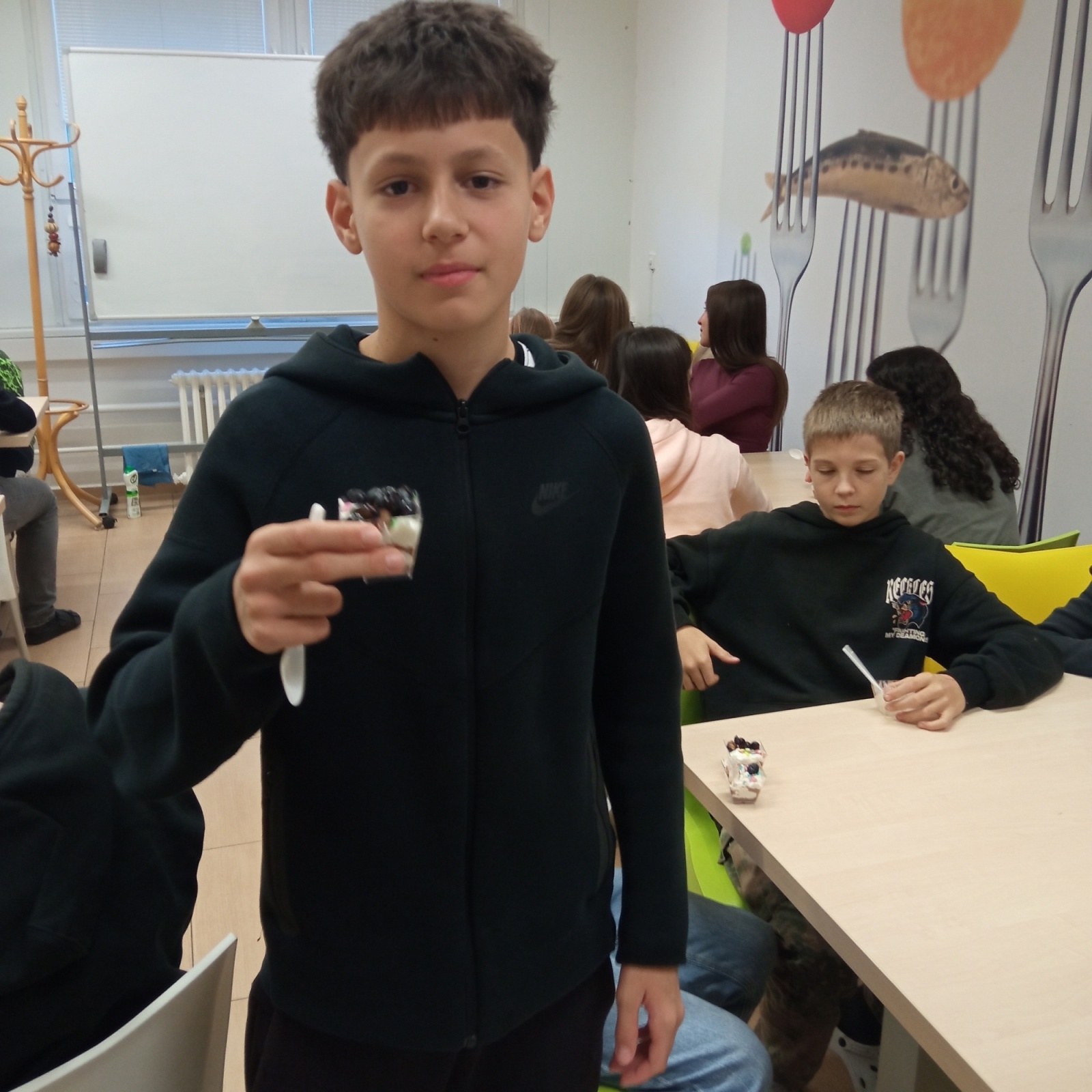 Kuchař / číšník – žáci nahlédli do práce v gastronomii, vyzkoušeli si jednoduché úkony spojené s přípravou pokrmů i základy obsluhy a zjistili, jaké dovednosti jsou pro tuto profesi klíčové, vyzkoušeli si připravit lehký dezert, který si mohli sami i nazdobit a nakonec i sníst.