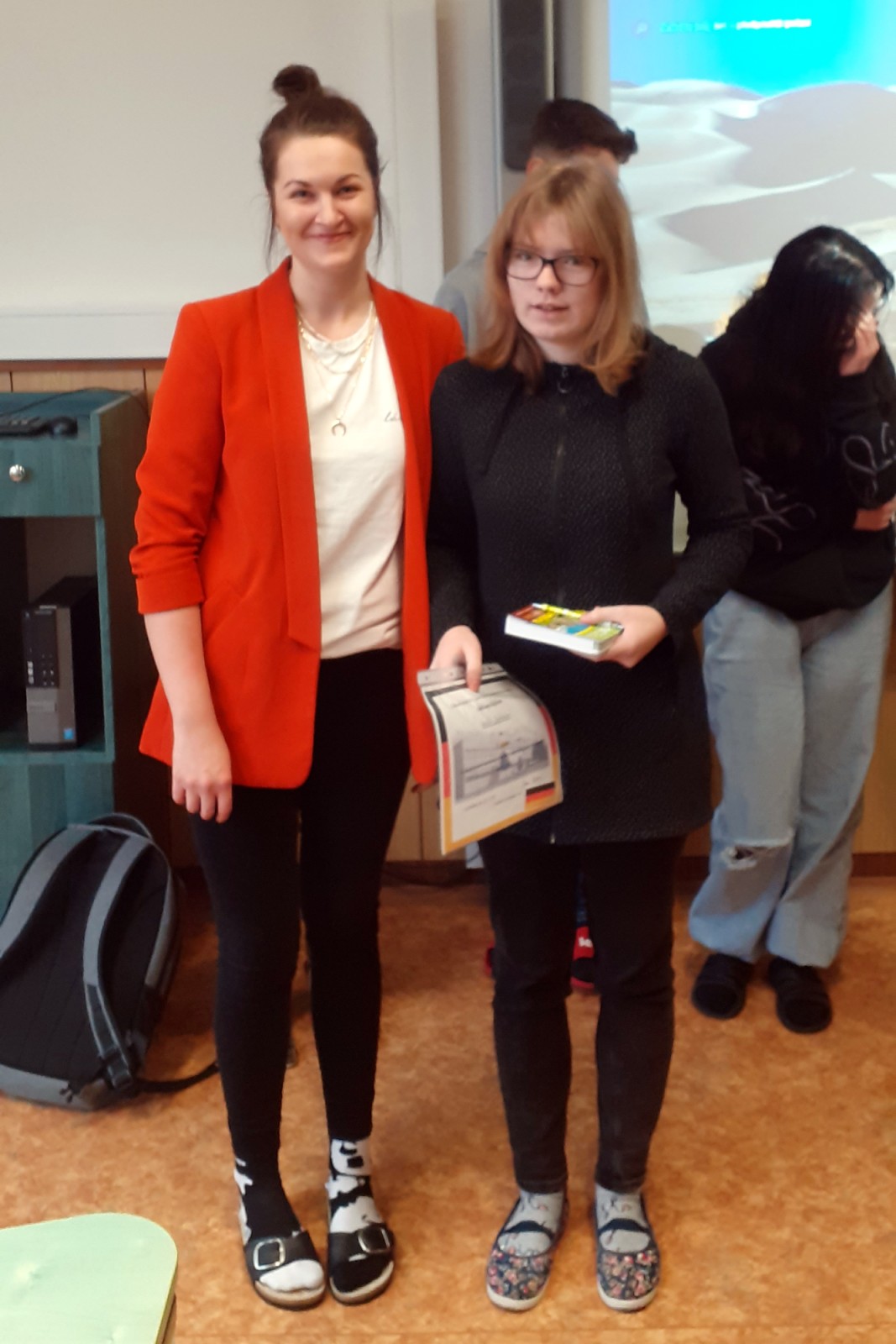 Všichni soutěžící dostali za účast malou odměnu, první tři v obou kategoriích i malý dárek. Vítězové obou kategorií postoupili do okresního kola. Všechny účastníky soutěže chválíme za jejich výkony a přejeme jim chuť a vytrvalost v dalším učení cizích jazyků.