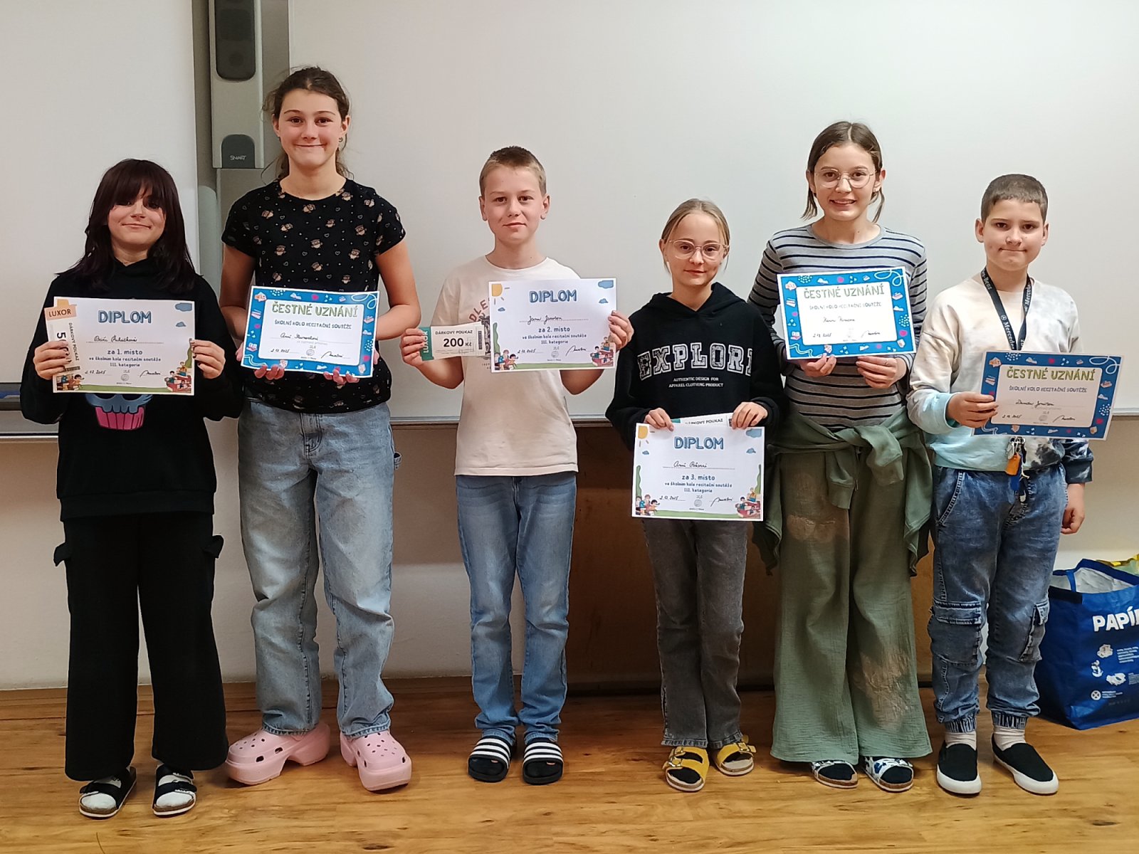 Děkujeme všem vystupujícím žákům za jejich pečlivou přípravu a odvahu postavit se před publikum. Vítězům srdečně blahopřejeme a přejeme jim mnoho radosti a úspěchů při dalších recitačních vystoupeních.