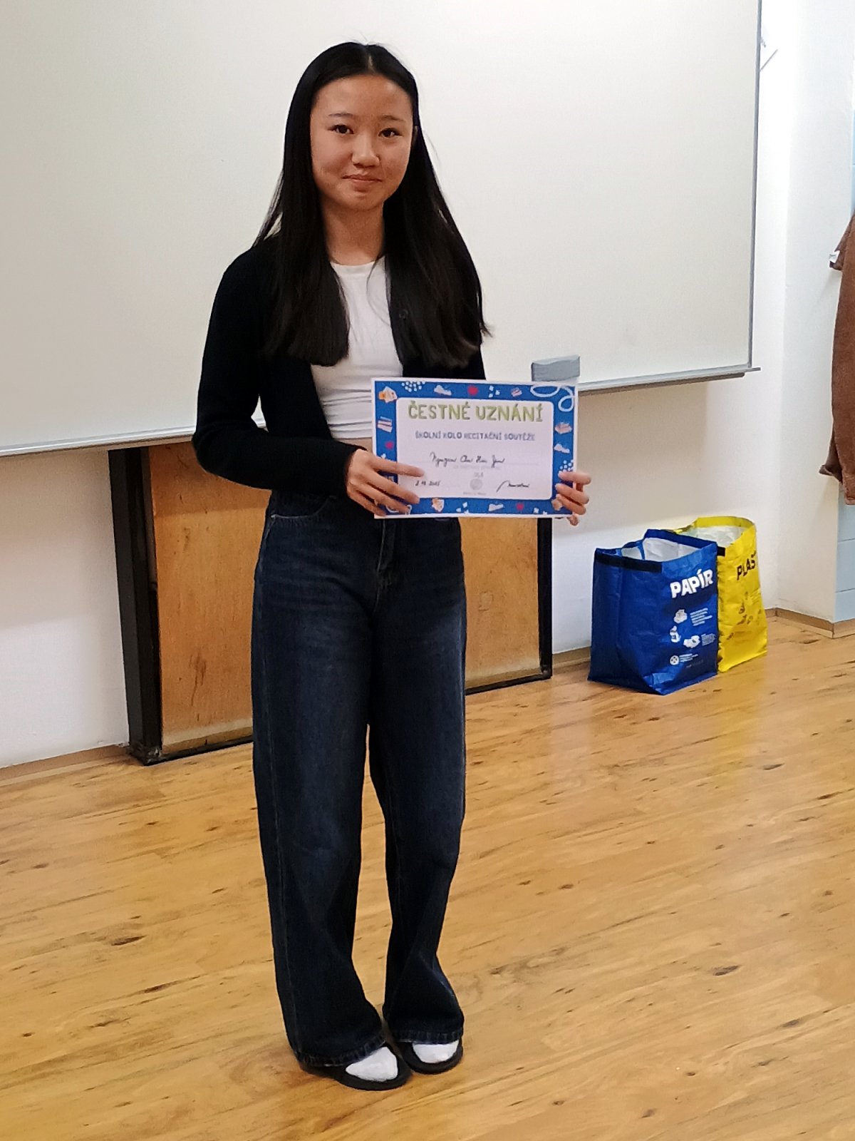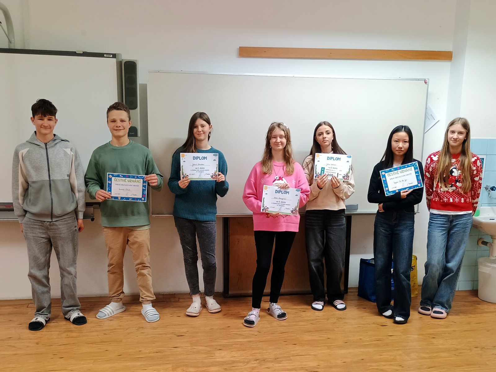 Čestná uznání za účast v soutěži získali: Karin Němcová 6.A, David Jonáš 6.D, Anna Steinochová 6.D