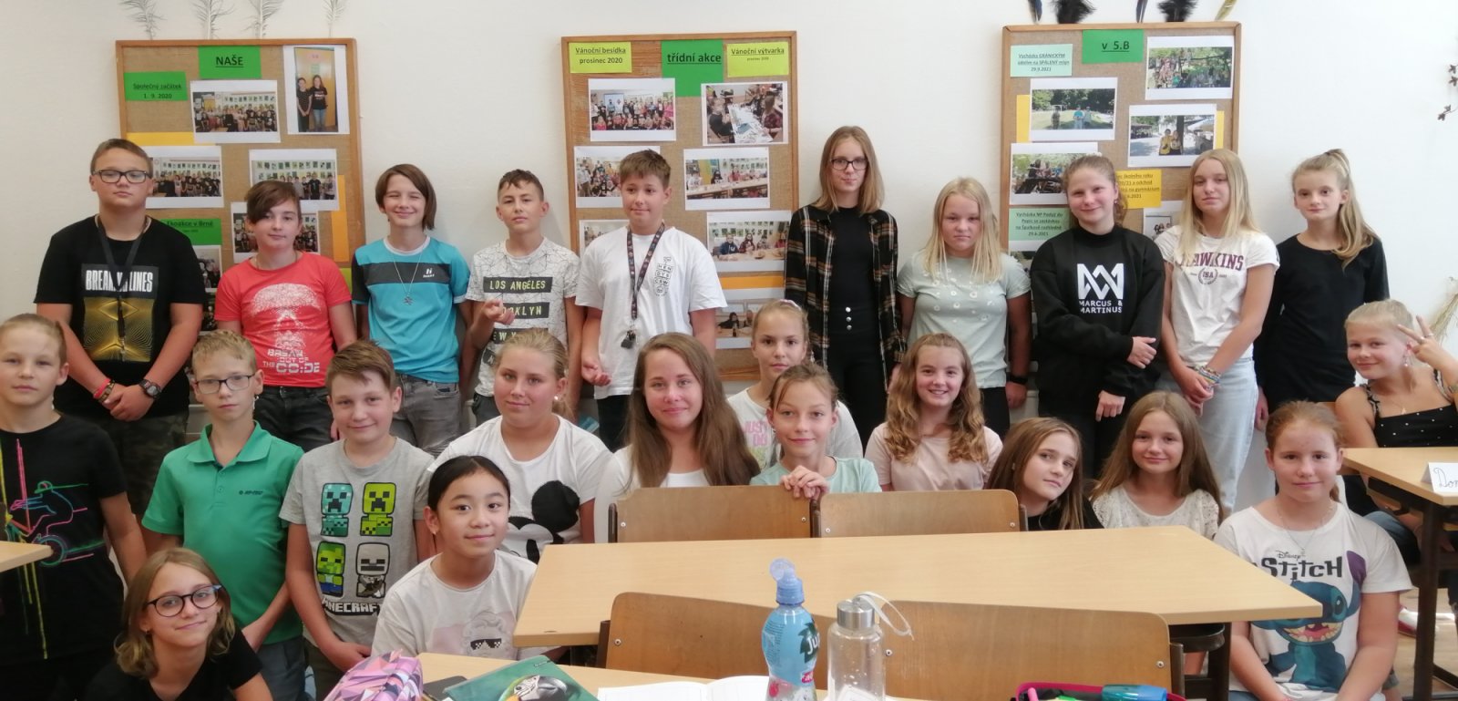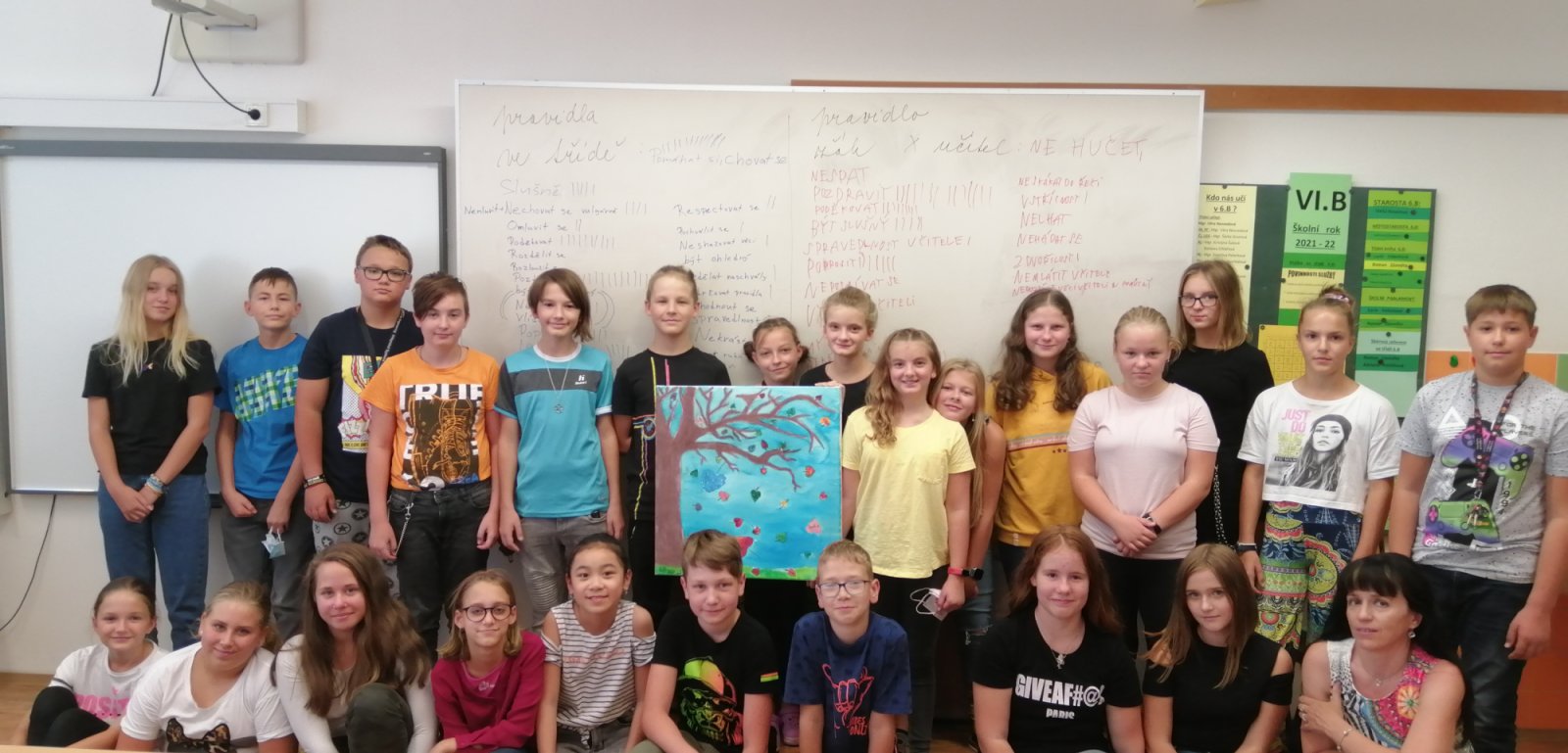 1. září jsme zahájili společně 2. stupeň školní docházky. Někteří naši spolužáci nám odešli na gymnázia, někteří k nám přišli jako noví. První společné dny se nám docela povedly, kromě testování, seznámení se školním řádem jsme se věnovali i společné výtvarné tvorbě. Jako třída jsme si společně vybrali téma a výtvarné duše třídy postavili základy našeho společného díla. Ostatní pak vše dotvořili svými podpisy. Fotky Vám nabídnou pohled do naší třídní atmosféry.