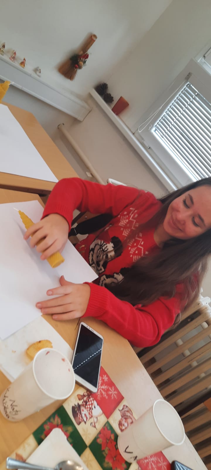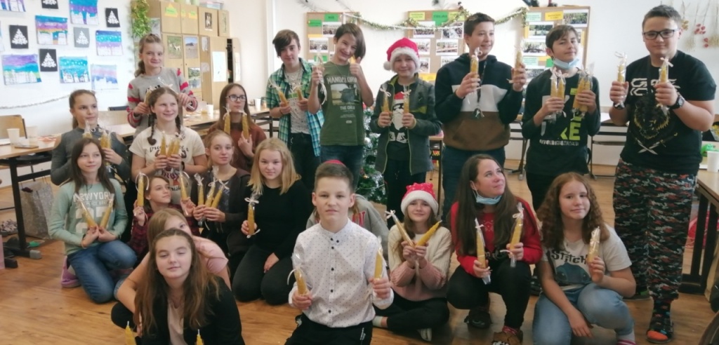 Během vánoční besídky jsme si přečetli vánoční poštu, rozdali dárky a vyrobili svíčky ze včelího vosku. Nakonec jsme si zahráli i hry, které si dobrovolníci připravili pro celou třídu.