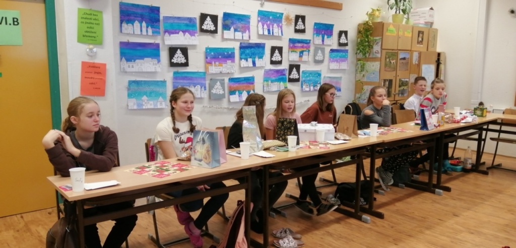 Celý Advent se třída vánočně zdobila včetně stromečku. Ve vytoužený den třída přivítala své členy rozsvícenými svíčkami, vůní čaje, cukrovinek a různých sladkostí. Každý přinesl, co mohl. Velký dík patří rodičům, kteří nám ochutnávky dobrot sponzorovali.