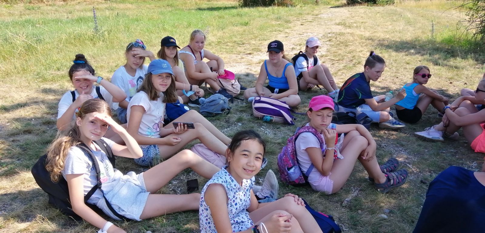 Poslední úterý školního roku 2020-21 vyrazila třída 5.B na procházku do NP Podyjí. V Sedlešovicích za mostem jsme odbočili na zelenou turistickou značku, která nás vedla vinohrady s výhledem na celé Znojmo, na Špalkovu rozhlednu, do Konic a nakonec do Popic k rodině Adélky Miklovicové, která nám nachystala skvělé občerstvení.......různé druhy ovoce, buchty, limonády. Navíc jsme si prohlédli jejich úžasné hospodářství se zvířátky. Návrat do Znojma už proběhl autobusem, protože už bylo opravdu velké horko. Nikdo nechtěl chybět další den na rozdávání vysvědčení. Moc děkujeme Adélce a celé rodině na příjemný zážitek.