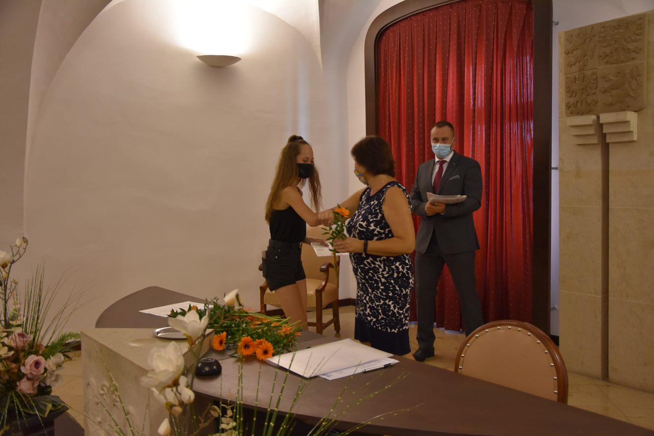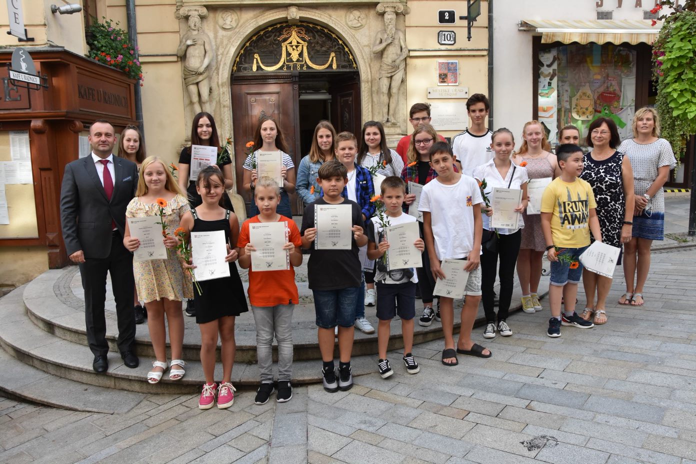Ve středu 16. září 2020 jsme se opět sešli v prostorách znojemské radnice, kde pan starosta Jan Grois společně s paní ředitelkou Evou Hubatkovou předali našim žákům mezinárodní jazykové certifikáty celkem ze čtyř úrovní. Úrovně YLE Starters dosáhlo 8 žáků, úrovně YLE Movers 3 žáci, úrovně YLE Flyers 5 žáků a úrovně KET for Schools celkem 5 žákyň.