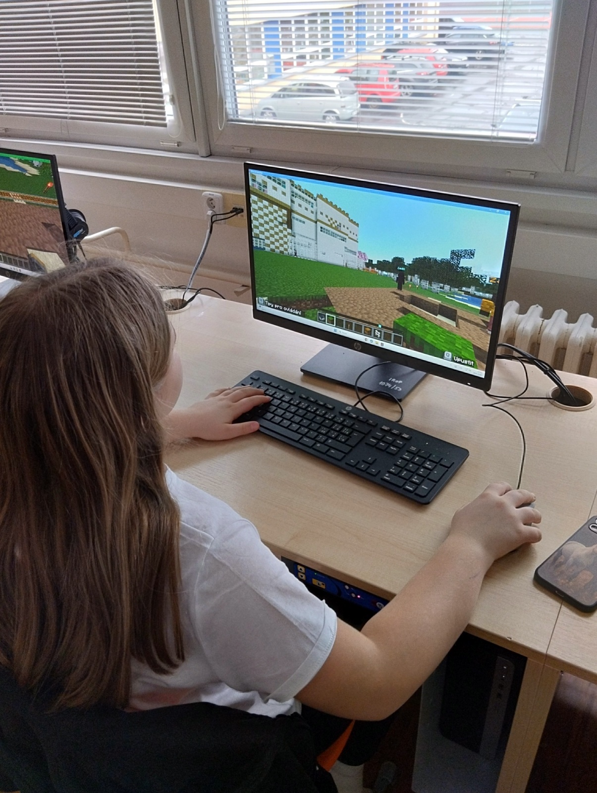 Nejprve jsme se seznámili s prostředím programu Minecraft, prozkoumali jeho možnosti a postavili první dům. Poté jsme začali společně stavět vesnici a nyní začínamé budovat virtuální model naší školy. Děti tak rozvíjejí prostorové myšlení, týmovou spolupráci i cit pro detail.