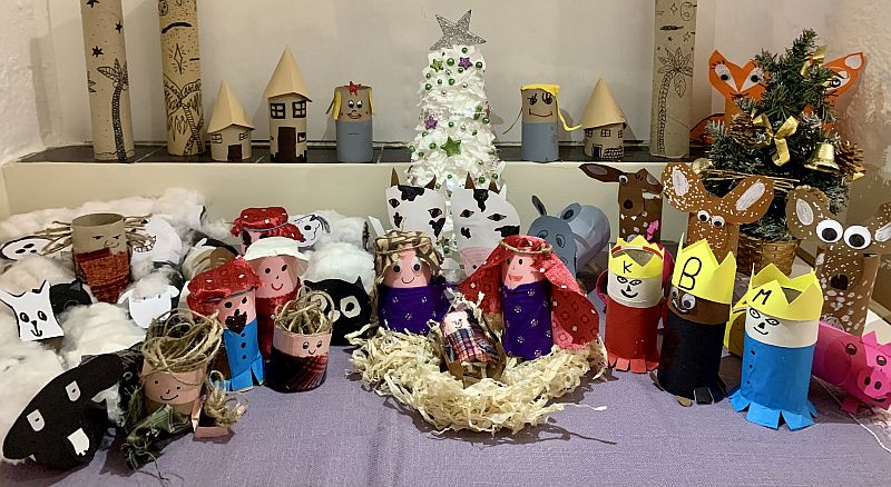 Betlém z ruliček od toaletního papíru nyní zdobí chodbu naší školy a pohled na něj vyvolává krásný pocit z vytvořeného díla, na kterém se podílely vzájemně si pomáhající děti od prvního do čtvrtého ročníku.