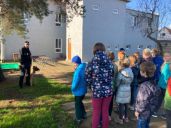 Povídala si s námi o tom, co dělat a jak se zachovat, když budeme sami doma a zazvoní neznámá osoba. Zopakovala s námi důležitá telefonní čísla. Na závěr nás čekalo velké překvapení v podobě ukázky výcviku služebního psa.