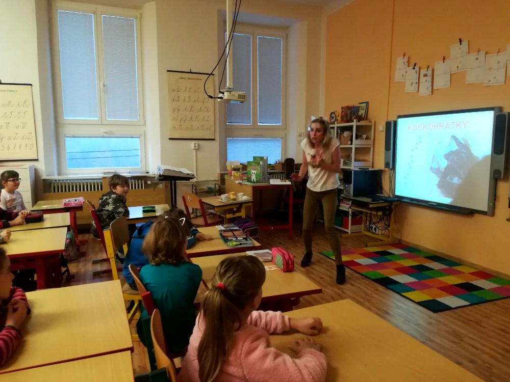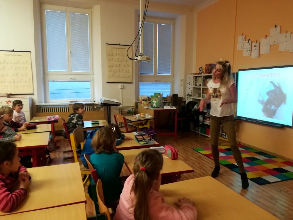 Poutavým způsobem představila předškolním dětem a žákům prvního a druhého ročníku svoji knihu Z deníku kočičky Ťapičky. Děti se dozvěděly, jaká dobrodružství Ťapička prožívala ve svém novém domově, jak se seznámila s kocourkem Balonkem a kočkami Týnkou a Píšou.