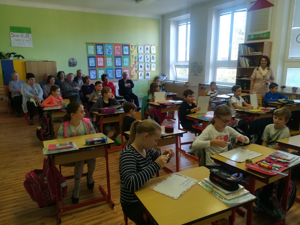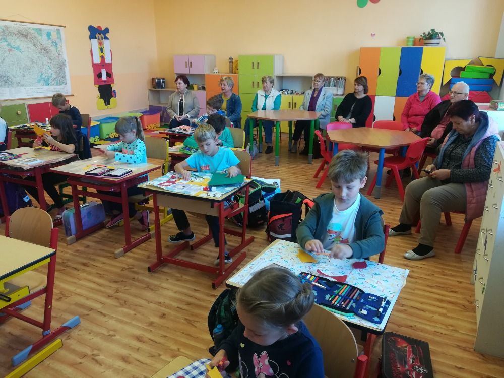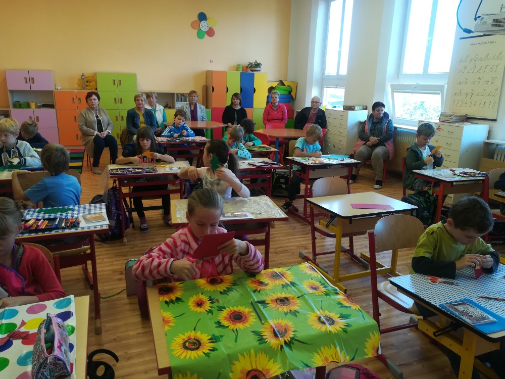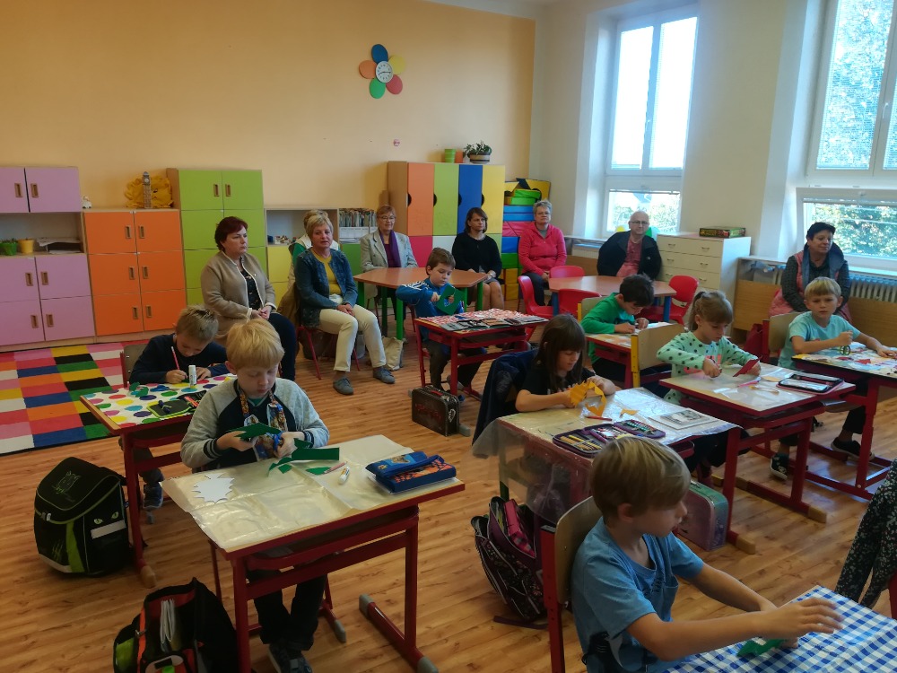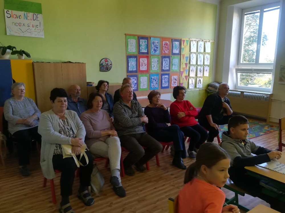 Byli jsme překvapeni, jak se nám v Konicích obě třídy zaplnily. Žáci prvního a druhého ročníku vystřihovali listy na podzimní výzdobu, žáci třetího a čtvrtého ročníku hráli didaktickou hru „Čínská restaurace“, do které se postupně zapojili i naši senioři. Na závěr jsme si povídali a zavzpomínali, jaké to bylo, když byli dědečkové a babičky školáci.