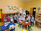 Nepřišel však sám. S sebou přivedl nejen hodného a krásného anděla, ale také čerta. Děti zarecitovaly připravené básničky a čerta se bály jen maličko. Za odvahu dostaly od Mikuláše balíčky.