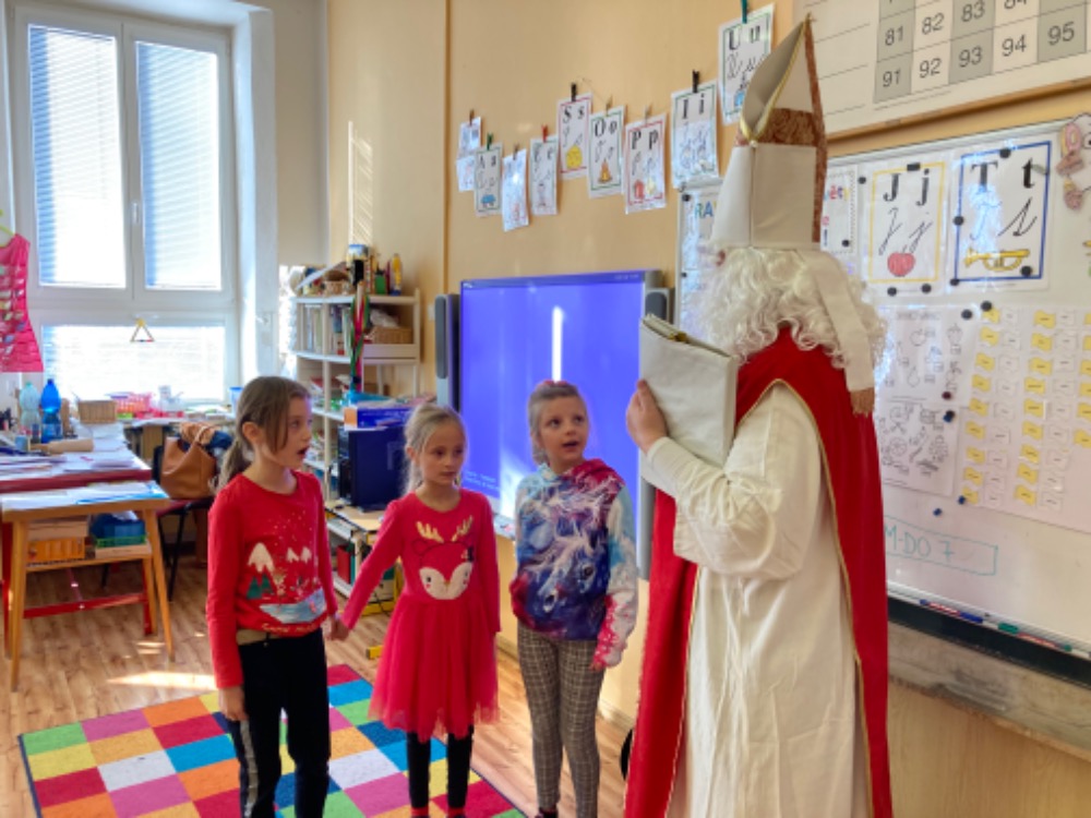 Děti na jejich příchod netrpělivě čekaly a celý týden pilně trénovaly básničky a písničky, které hodný Mikuláš odměnil bohatou nadílkou.bČertík si podle tradice trošku zazlobil a za odměnu dětem zatancoval. Děti slíbily, že budou celý následující rok poslušné a Mikuláš s andílkem je ujistili, že si to opět za rok přijdou zkontrolovat.