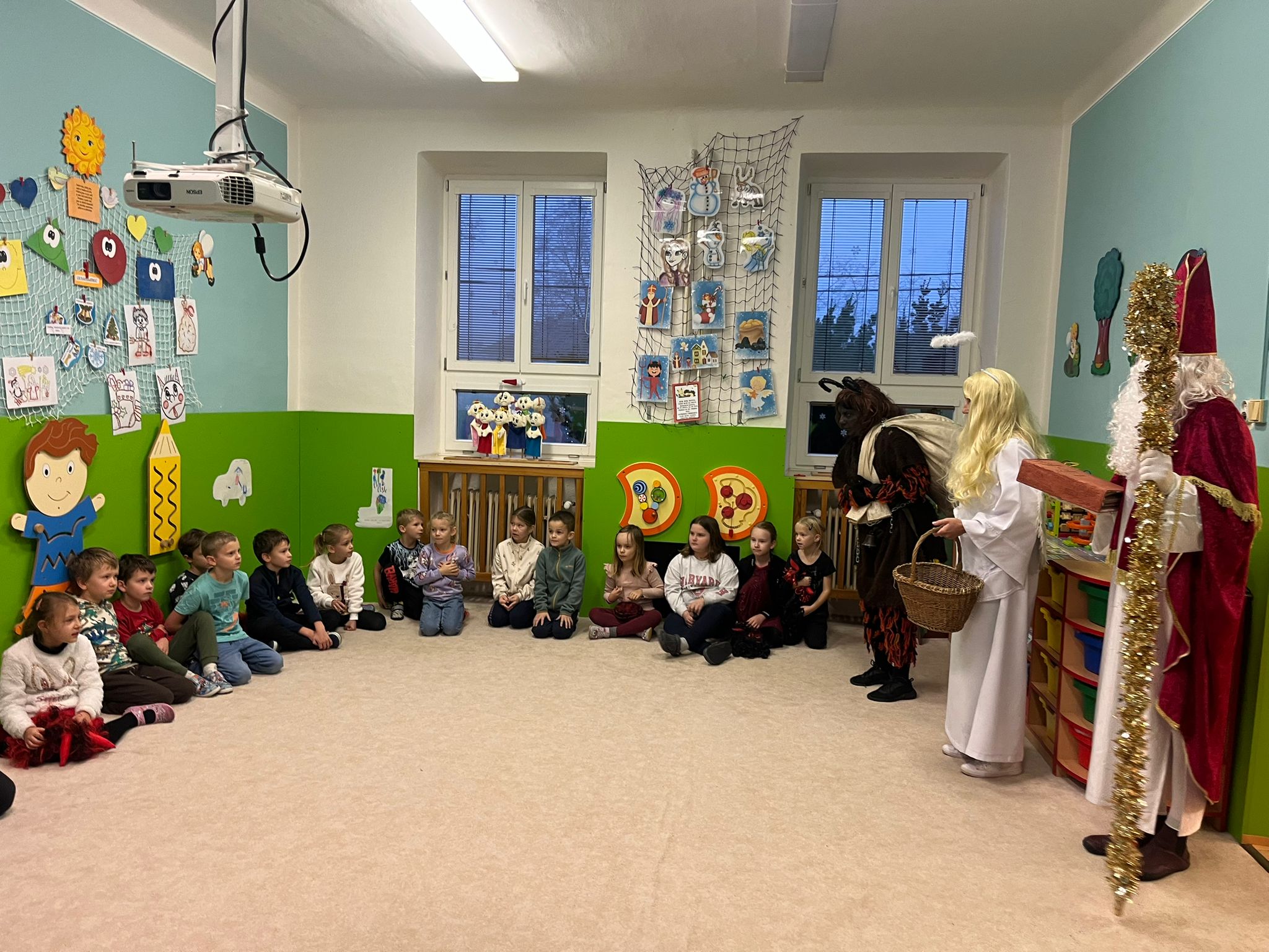 V pátek 5.prosince se naše škola proměnila v pohádkové místo! Zavítala k nám slavná trojice – Mikuláš, čert a anděl. Nadílka byla společná pro děti z mateřské školy i pro žáky 1. až 4. ročníku.