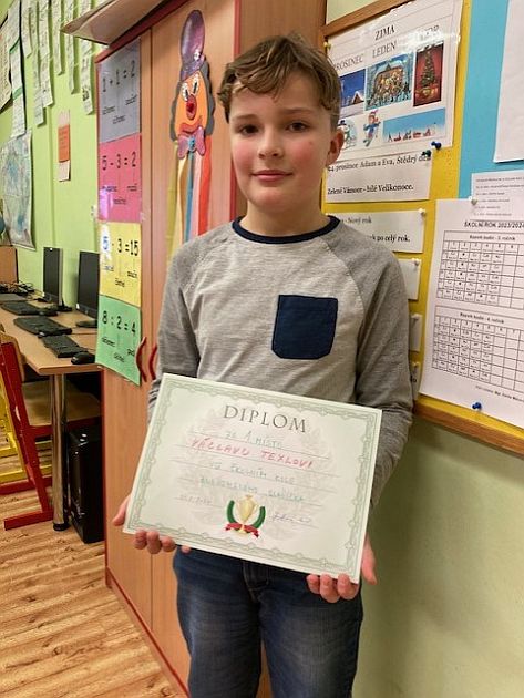 Jsme velmi pyšní, že se nám letos opět vydařil postup do kola okresního, kde bude s písní "Co to tam šupoce" soutěžit Václav Texl, který ve své kategorii vyhrál první místo. Vašíku, velmi gratulujeme!
