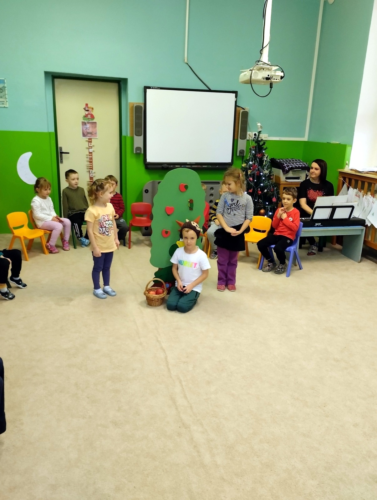 Navštívili jsme naši mateřskou školu, kde nám malí kamarádi předvedli krásné pásmo koled a básniček. Stejné vystoupení ukázali i svým rodičům. Naši školáci při této návštěvě s úsměvem zavzpomínali na svá „školková léta“ a s chutí si pohráli s autíčky, panenkami nebo se proběhli v herně mezi malými dětmi.