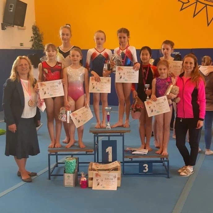 Nejprve přijaly pozvání GK Šumperk na mezinárodní závod Memoriál Petry Urbáškové, kde v soutěži družstev obsadilo družstvo A ve složení Gabriela Emma Kroupová, Que Anh Nguyen a Simona Molíková bronzový stupínek. Druhé družstvo B ve složení Stella Štolová, Sofie Němcová, Karolina Mia Kováčová skončilo na šesté příčce.