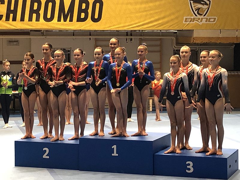 Veronika Kubošná spolu s družstvem Sokola Brno I nastoupila ve 2. sledu na přeskok, kde předvedla cukuharu schylmo. Rozběh, odraz, let a doskok. Pár vteřin, které musí zachytit bystré oko rozhodčí, aby vyneslo nad dívkou soud. Cukuhar má Veronika naskákaných bezpočet a s přeskokem si vždy výborně rozuměla. Však to poznaly i zkušené rozhodčí, které Verunčin přeskok ocenily vysokou známkou 12,650 b. Další nářadí - bradla. Nikdo si netroufne předem odhadnout, jak sestava dopadne. Stačí malinké zaváhání a... všechny naděje jsou tytam. Ne však v případě Veroniky, která vsadila na jistotu. Všechny zařazené prvky má již pevně ve svých rukou: vzklopka, stojka, přemyk, šlapák, letka, vzklopka, stojka, veletoč, a... závěrečné dvojné salto vzad čistě doskočené. Prvek, na který se tak dlouho připravovala a pro který nadešla ta správná chvíle zařadit jej do sestavy. Závod se převalil do druhé poloviny a Veronika naskakuje na všemi obávanou kladinu. Klid, koncentrace a obrovský respekt. Kladina bývala vždy Veroničinou silnou disciplínou a ani dnes Verča nevynechává v sestavě žádné ze svých salt. Naopak k novému náskoku přemetem vpřed ještě přidává akrobatickou vazbu gymnastickou hantýrkou řečeno blecha + plančik, nebo-li rychlý přemet vzad a salto vzad prohnutě s doskokem jednonož. Předčasná radost ze všech dosud zdárně předvedených prvků se přeci jen nevyplatila a chvilka nepozornosti měla za následek uklouznutí na konci kladiny při odrazu do závěrečného salta. Vysoká známka za obtížnost sestavy a s jen několika drobnými chybičkami v sestavě však bodovou ztrátu za pád zmírnila. Na poslední nářadí nastupovala Veronika jako vůbec poslední závodnice celého závodu a my měli možnost si spolu se všemi diváky a fanoušky sportovní gymnastiky vychutnat Veroničinu zbrusu novou sestavu na prostných. Dynamický Šavlový tanec Veroniku rozpumpoval natolik, že vylétla vysoko nad hlavy rozhodčích a s jistotou zapíchla své první dvojné salto vzad skrčmo předvedené na závodech. Veronika dotančila celou svou sestavu, po níž nejedno oko zkušených diváků nezůstalo suché. S napětím jsme očekávali vyhlášení výsledků. Šestapadesát dívek napochodovalo ke slavnostnímu vyhlášení výsledků. V soutěži družstev vyhrála Veronika Kubošná, Karolína Karásková, Sára Sobolová a Daniela Urbanová z družstva Sokola Brno I, v němž má Veronika Kubošná (KSG Znojmo) tu čest nyní hostovat. Stříbrnou příčku obsadila děvčata Sokola Kampa před bronzovými děvčaty z Bohemians Praha. V soutěži jednotlivkyň zlatou medaili a pohár českých olympioniků získává Veronika Kubošná před stříbrnou Ajou Otou ze Slovinska a bronzovou Anna Beerovou z Českých Budějovic hostující za Gympru Praha.