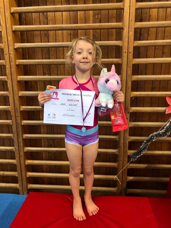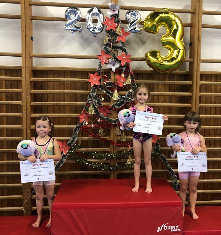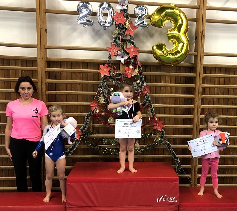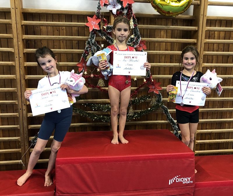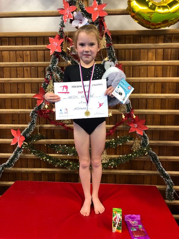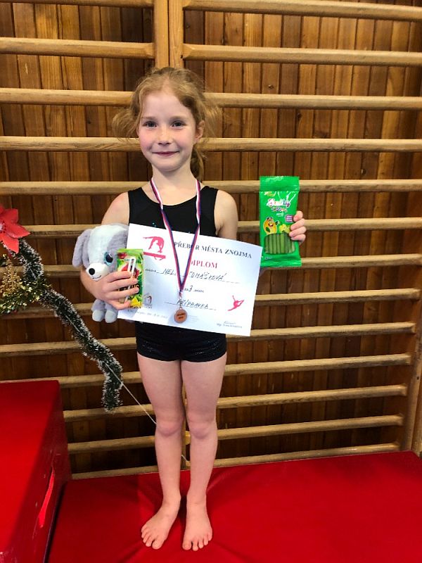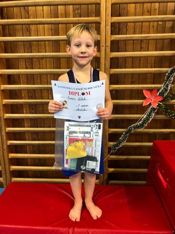 aby připomněla blížící se vánoční čas všem nejmenším gymnastům a gymnastkám z naší gymnastické školičky. Všechny děti se naučily spoustu nových věcí, protože spolu pravidelně každý týden pilně trénovaly, protahovaly se, zpevňovaly, posilovaly, skákaly a šplhaly, přelézaly a přeskakovaly, ručkovaly a visely, a kdo ví, co ještě dalšího, jen aby mohly svým maminkám a tatínkům taky jeden dárek nadělit. To, jak mají šikovné děti, které rády cvičí a zvládnou si zapamatovat i svoji sestavu, kterou beze studu a zaváhání svým rodičům předvedly právě na předvánočním závodě Znojemská rolnička. Všem se sestavy náramně povedly, a proto se mohly radovat z dárečků, které pro ně připravily paní trenérky a maminky p. Kalábová a p. Šimáková. Všem děvčatům gratulujeme a těšíme se na další společné cvičení a závodění. Mezi děvčaty nar. 2019 zvítězila Vanesska Grossová, nar. 2018 Teodorka Adamov, nar. 2017 Lea Sklenska, nar. 2016 Anežka Kalábová, nar. 2015 Terezka Šimáková, nar. 2014 Gabriela Emma Kroupová, nar. 2013 Sofie Němcová, nar. 2012 Gabriela Gránská, nar. 2011 Vlčková Amálie, nar. 2010 Fruhaufová Karolína, a starší děvčata: Hana Chlubná.