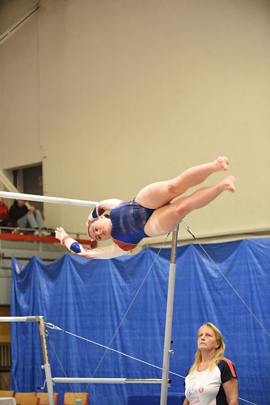 V neděli závod pokračoval třemi sledy 24 kvalifikovaných družstev II. ligy, kam si v loňském roce vybojovala postup i naše děvčata a na krajském závodě svou připravenost k závodu potvrdila. Odhodlání bylo veliké, ale čekání na třetí sled únavné. Přesto se chtěla naše děvčata ukázat v tom nejlepším světle. Nejdříve nastoupila před rozhodčí na přeskoku, kde Hana Chlubná i Simona Molíková předvedly přemet s obratem 180 st. v 1. i v 2. letové fázi. Náročnou cukuharou skrčmo se uvedla Julie Bedřichová a cukuharu schylmo přidala Karolina Mia Kováčová. Bohužel dotyk rukou při doskoku i pád do kotoulu znamenal vysokou srážku pro obě děvčata. Na bradlech se jako první předvedla "půjčená" Alexandra Václavíková, která zacvičila svou sestavu velmi čistě a bez zaváhání. Své sestavy bez větších chyb předvedla i Simona, Mia a Julka. To se bohužel nedá říci o cvičení na kladině, na které děvčata předváděla prvky velké obtížnosti i rozsahu, ale nedokázala se koncentrovat natolik, aby se nevyvarovala pádů. Přestože na prostných byla děvčata za své cvičení hodnocena vysokými známkami, již ztrátu z kladiny a přeskoku dohnat nedokázala. Celkově skončila na 23. místě v soutěži družstev. V jednotlivkyních skončila 49. Karolina Mia Kováčová, 50. Julie Bedřichová, 54. Simona Molíková a 115. Hana Chlubná ze 123 kvalifikovaných závodnic. Děkujeme za hostování Alexandře Václavíkové a její trenérce Kateřině Vlkové z TJ Sokol Brno I. Tento gymnastický závod nebyl jen o vítězství, ale i o vášni, vytrvalosti a odhodlání nejen všech závodnic, ale i všech trenérů. Každý tým i každá závodnice si zaslouží veliké uznání za svou práci a odhodlanost pro gymnastiku.