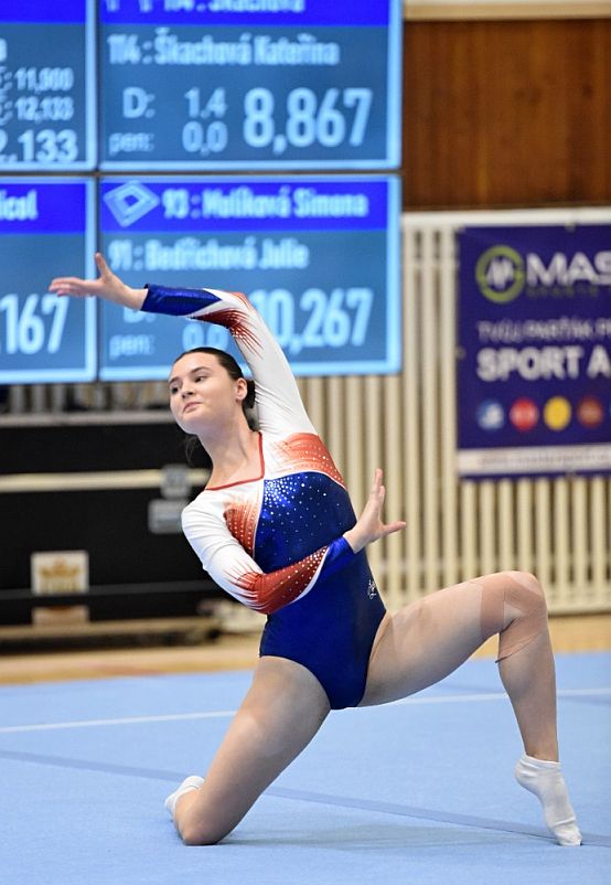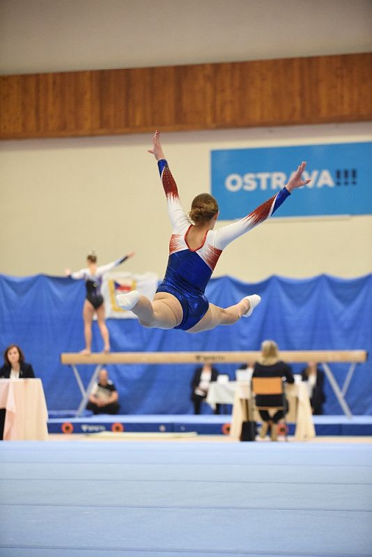 Konec roku 2023 klepe na dveře a spolu s ním vrcholí i gymnastické soutěže. Každý víkend se gymnastky a gymnasté spolu schází, aby poměřili své síly a porovnali to, čemu se doposud naučili. A není toho právě málo. Napětí vzrůstá a nervozita je cítit na každém kroku. Adrenalin pociťují nejen závodnice a závodníci, ale ve velké míře i diváci, kteří si tuhle podívanou prostě nemohou nechat ujít. Ani znojemské gymnastky nezůstaly pozadu a spěchaly si vyhledat poslední volná místečka v hledišti dříve než sami přijdou na řadu. V Ostravě se totiž konalo Mistrovství České republiky ve sportovní gymnastice v Extralize, v I. lize a v II. lize, kde měl náš klub KSG Znojmo rovněž své zastoupení. Vidět v akci na vlastní oči účastnici posledních OH v Tokiu Anetu Holasovou nebo naopak těch příštích v Paříži Soňu Artamonovou, to jsme si prostě nemohli nechat ujít. K vidění byly ale i další skvělé gymnastky. Nejlépe své gymnastické umění předvedly gymnastky z TJ Sokol Brno I s hvězdným obsazením: Soňa Artamonová, Vanesa Mašová, Klára Peterková a Alice Vlková, které se staly Mistryněmi ČR v Extralize. V jejich šlépějích šla i mladší děvčata TJ Sokol Brno, které získaly nejen titul Mistra ČR I. ligy, ale i 2. Vícemistra ČR, k čemuž nemalou měrou přispěla i hostující znojemská závodnice Veronika Kubošná a která navíc v soutěži jednotlivkyň obsadila 4. místo