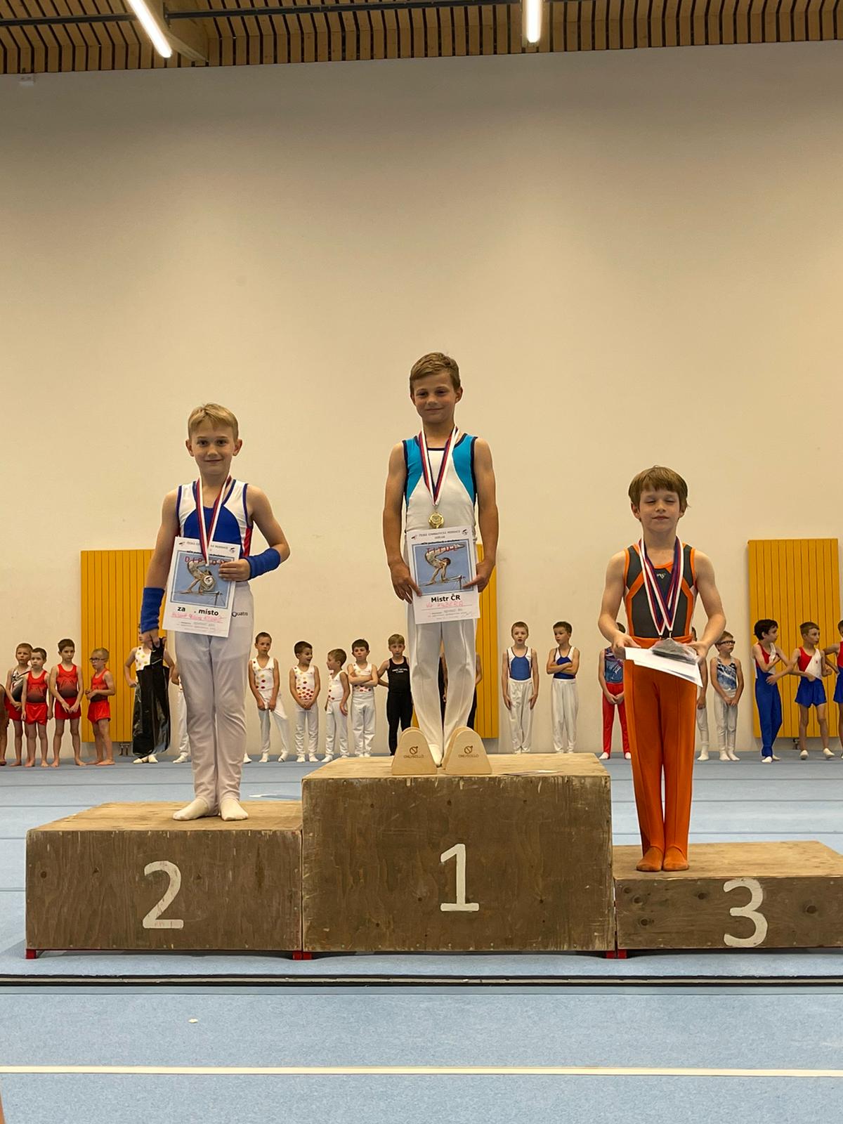 Klub sportovní gymnastiky Znojmo má velký důvod k oslavám, neboť po úspěšném vystoupení našich děvčat Terezy Šimákové a Gabriely Emmy Kroupové se ani chlapci nenechávají mezi nejlepšími borci ČR nikterak zahanbit. Na několikaleté vítězné tažení na Mistrovství ČR našich borců Kostika, Černého, Špačka, Hanzela, Dudy, Pospíšila, Černé, Chudé, Kubošné, ... v minulých letech navazuje náš současný talentovaný borec Adam Hubert Kováč, který se po vzoru svých úspěšných starších sester Karolina Mii a Mariky Niny Kováčových také nechal zlákat sportovní gymnastikou. A rozhodnutí to bylo více než správné, neboť pod vedením kolektivu trenérů včetně své maminky Pavly Kováčové dokázal zúročit hodiny práce i zábavy na trénincích a z Prahy si domů do Znojma přiváží titul Vícemistr ČR v kategorii nejmladších žáků. Rodina Kováčova gymnastikou prostě žije a je to na nich opravdu vidět. Jinak než s láskou a pílí se sport prostě dělat nedá. A když se k tomu přidá i pevná vůle a něco málo talentu, úspěch je na světě.