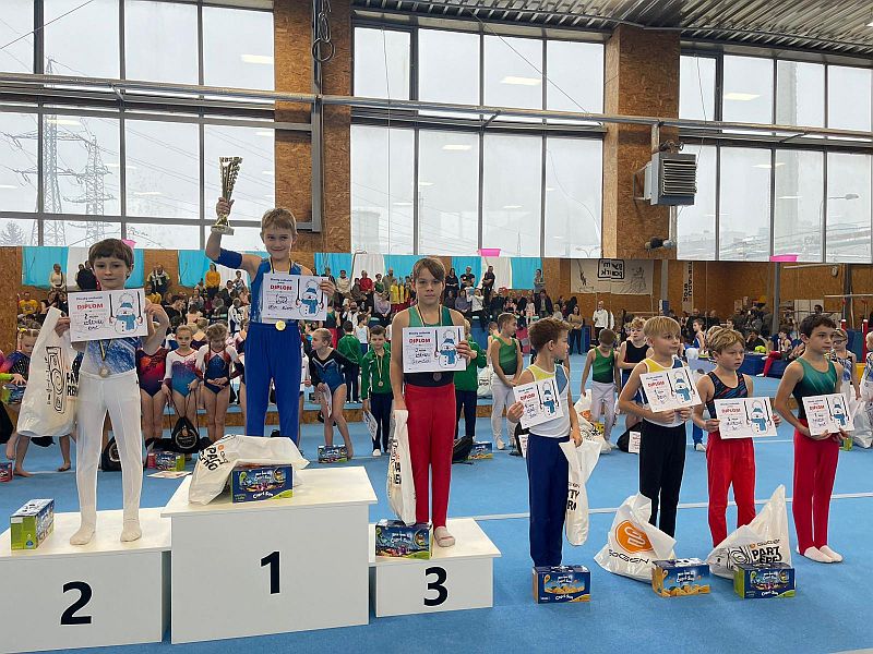 uspořádal pro kluky i holky gymnastický klub ve Zlíně, kde se dařilo znojemským hvězdičkám i borcům KSG Znojmo. Na stupínek nejvyšší vystoupal Adam Hubert Kováč, který zvítězil v kategorii nejmladších žáků. 4. místo vybojovala Janička Valová mezi nejmladšími žákyněmi a 5. příčku obsadila Terezka Šimáková v kategorii mladších žákyň. Další bramborová medaile byla připravená i pro Gabrielu Emmu Kroupovou, která se nevyvarovala nezdarů na kladině i na bradlech, ale i tak se mohla radovat i když z nepopulárního 4. místa v silně obsazeném závodě. Všem dětem gratulujeme ke krásnému předvánočnímu umístění.