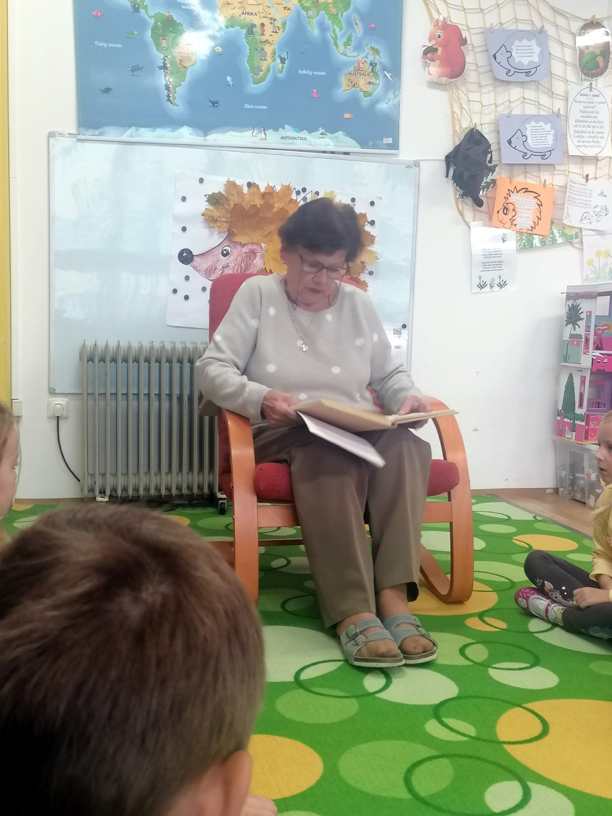 Jako první četla dětem babička Marta Stehlíková a připravila si pro děti pohádku O kohoutovi a slepičce. Děti byly z vyprávění nadšené, líbily se jim hry i aktivity, které si babička připravila. Všichni už se těšíme na další návštěvu a zajímavé čtení.