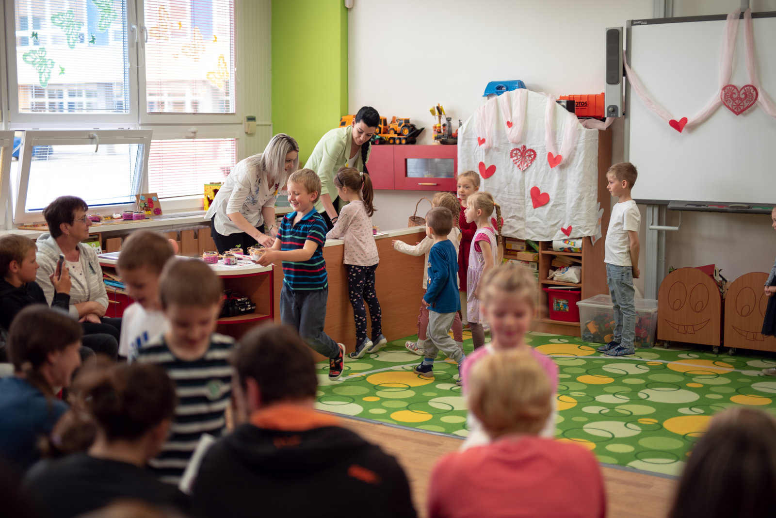 Děti předaly maminkám přání a dáreček s kytičkou, které ve školce vyrobily. Maminky byly dojaté a celé pásmo se jim velmi líbilo. Program byl zakončen tvořením s rodiči, kteří si společně s dětmi užili krásné dopoledne.