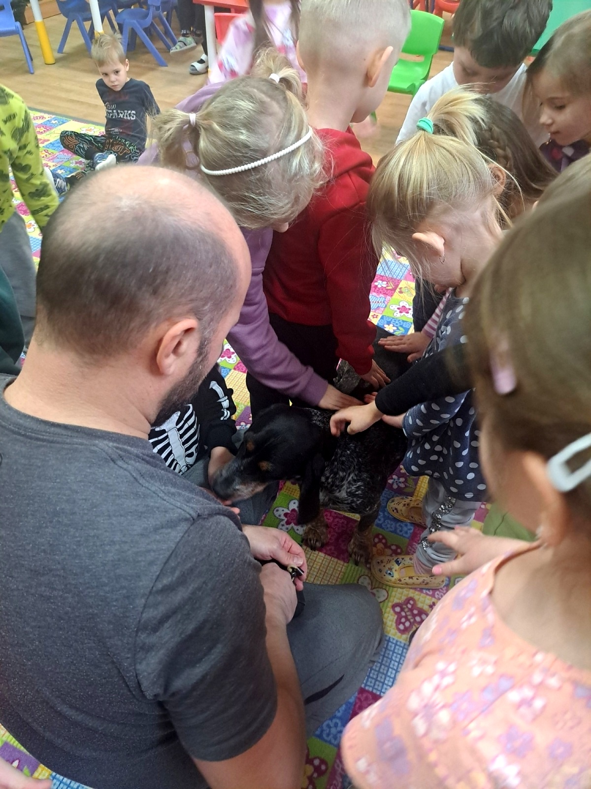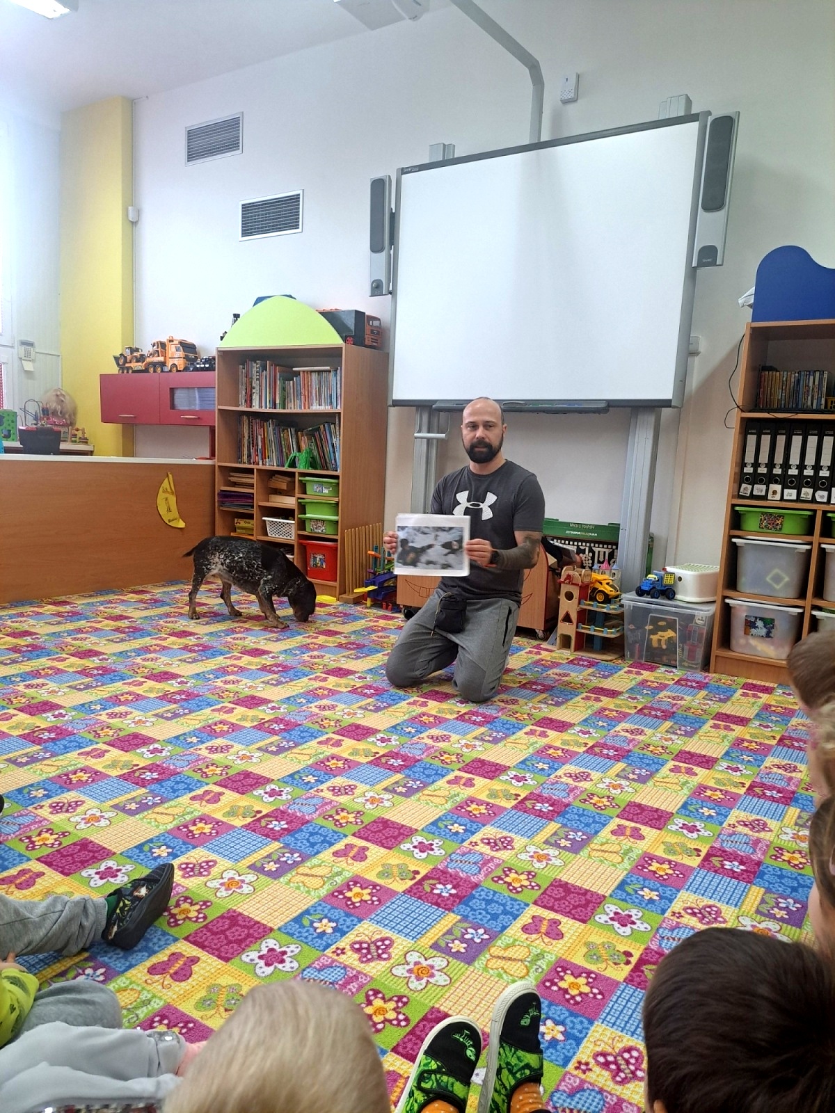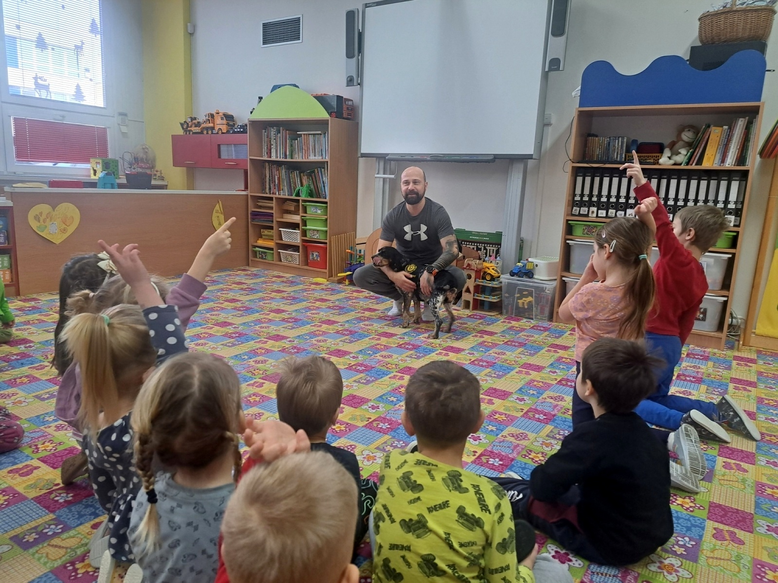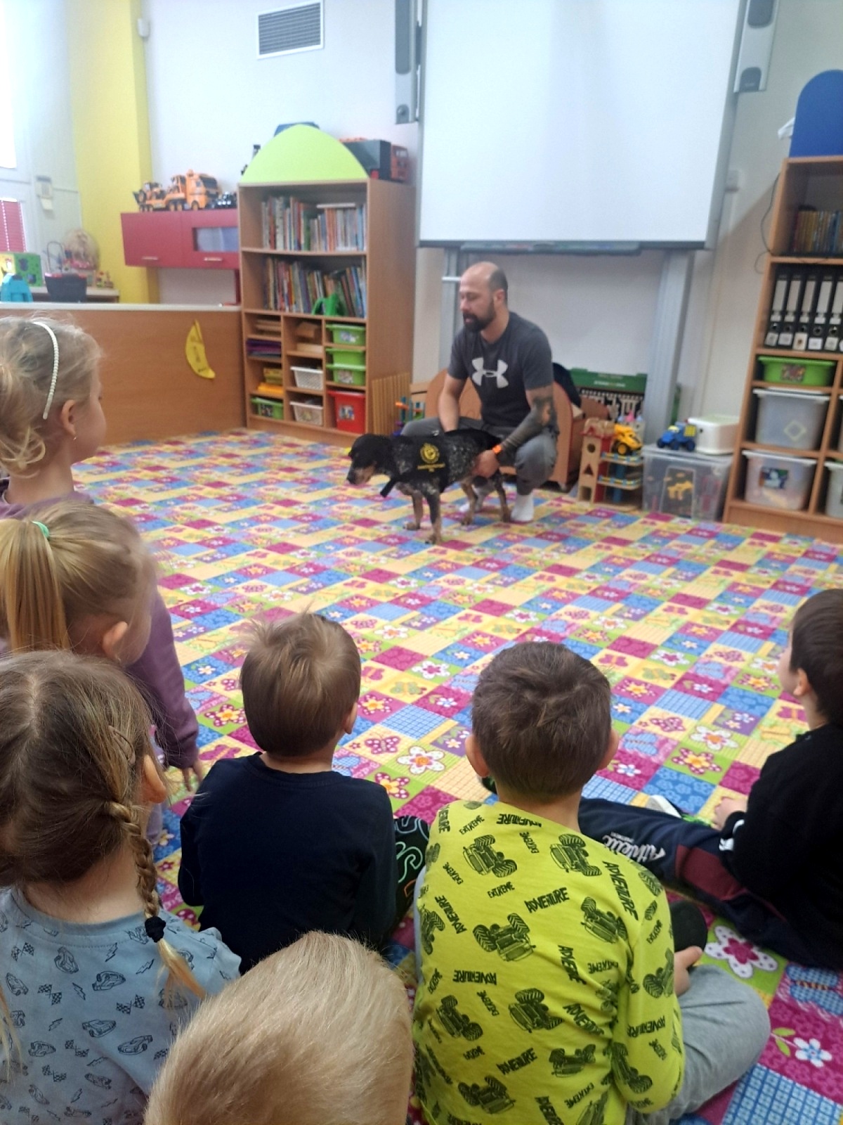 Nejprve se s dětmi vzájemně seznámili a poté pan Malačka dětem ukázal, jak Kety krásně poslouchá a plní různé povely. Kety dětem předvedla průchod tunelem, hledání pamlsků a další dovednosti. Součástí setkání bylo také seznámení s obrázky pejsků, kteří pomáhají lidem – například u záchranářů, hasičů, osob se zdravotním postižením nebo nevidomých.