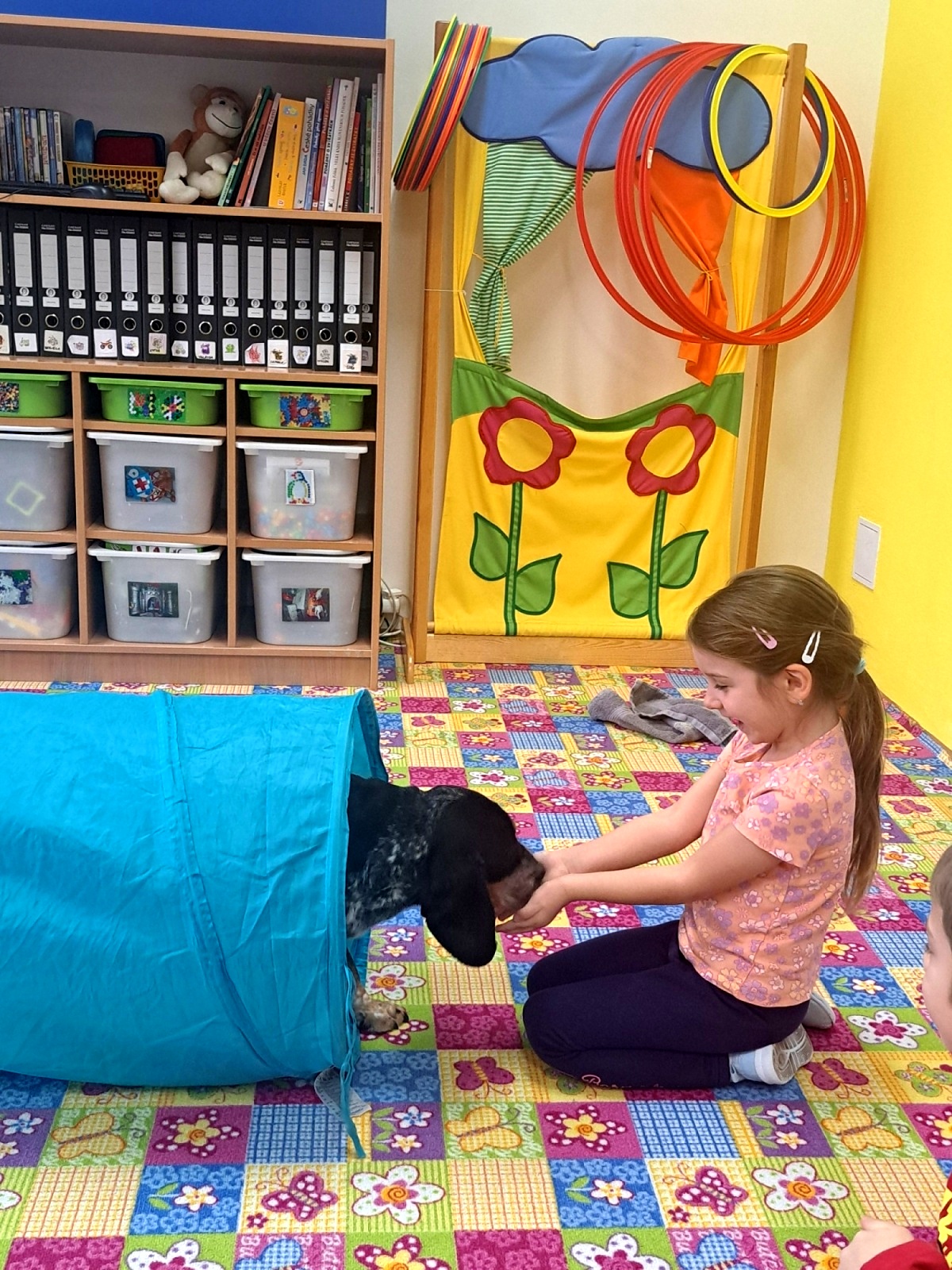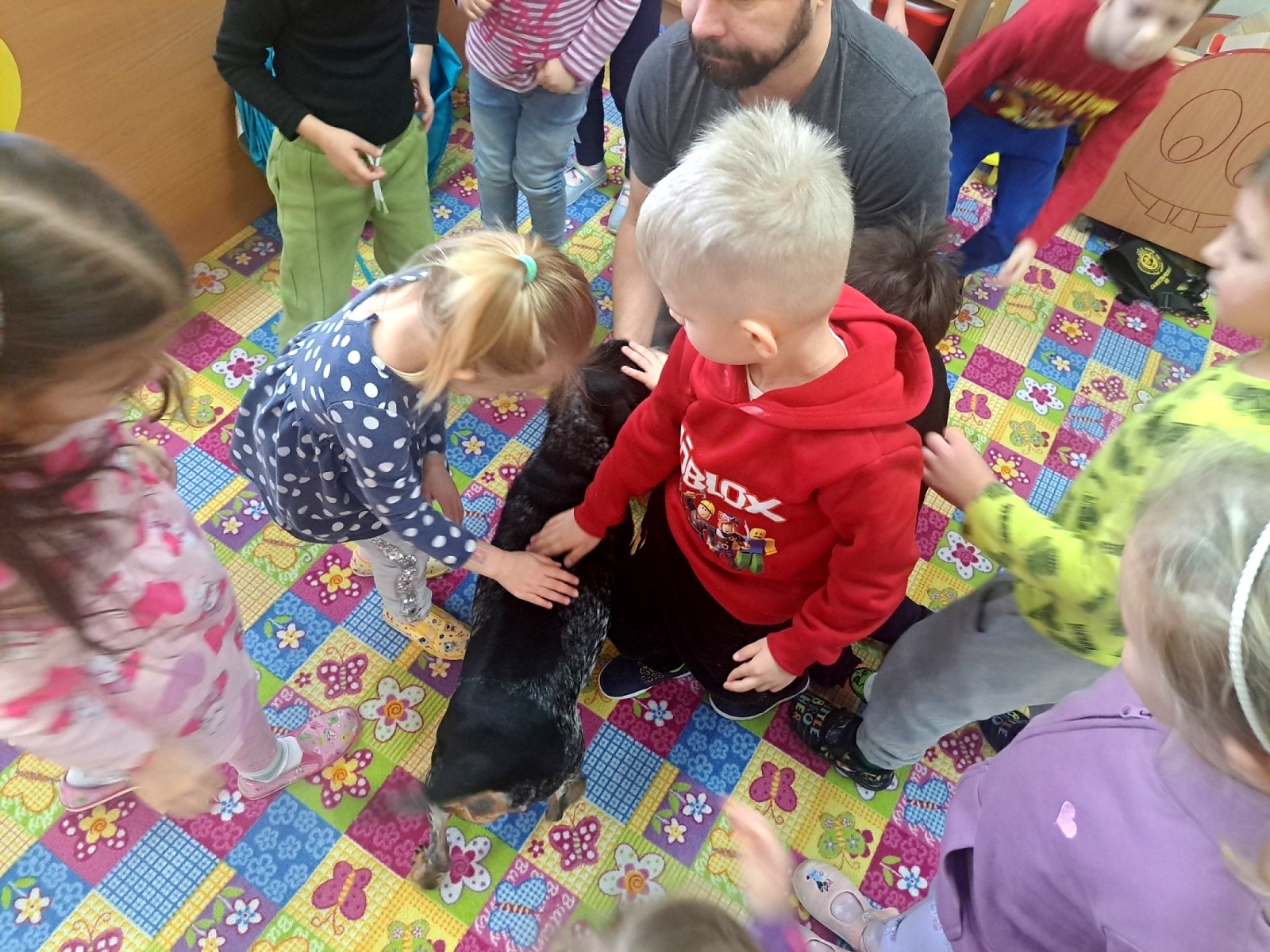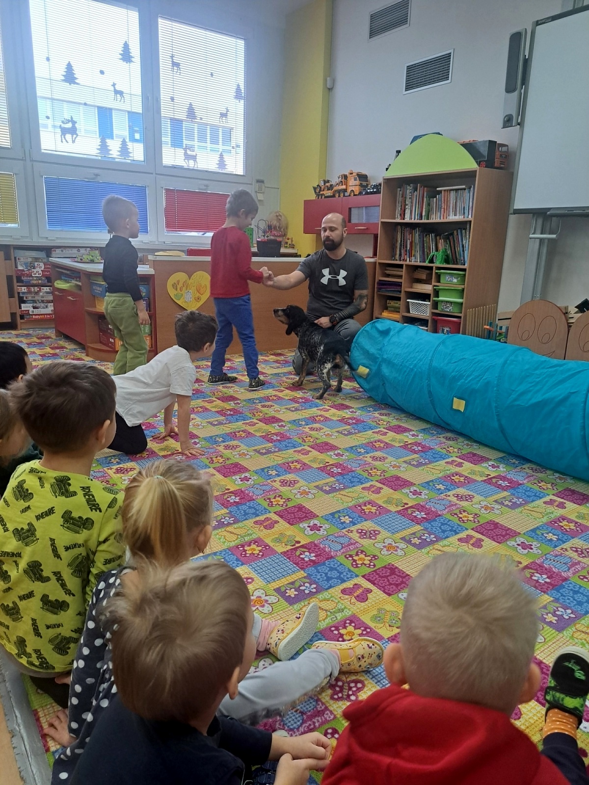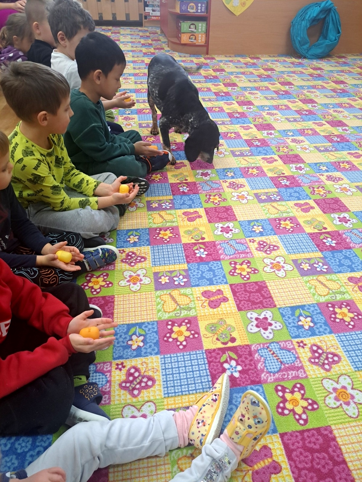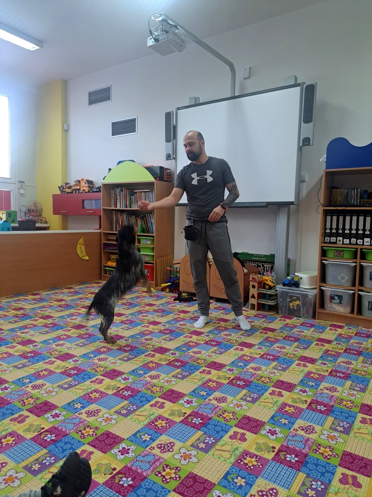Nejprve se s dětmi vzájemně seznámili a poté pan Malačka dětem ukázal, jak Kety krásně poslouchá a plní různé povely. Kety dětem předvedla průchod tunelem, hledání pamlsků a další dovednosti. Součástí setkání bylo také seznámení s obrázky pejsků, kteří pomáhají lidem – například u záchranářů, hasičů, osob se zdravotním postižením nebo nevidomých.