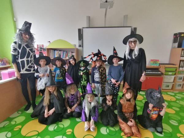 Děti se převlékly do krásných kostýmů čarodějnic a čarodějů a společně jsme si ve třídě zadováděli. Nechyběly úkoly a soutěže - např. let na koštěti, hra "Had leze z díry", namotávání pavouků, rozmotávání pavučiny, určování barev pomocí kouzelných lektvarů, které jsme společně ochutnávali a také jsme si udělali "Čarodějnickou oslavu" s velkou hostinou, kde jsme ochutnávali čarodějné muffiny, čarodějnické prsty, koláčky, bábovku a spoustu dalšího. Za přípravu pokrmů a spolupráci děkujeme rodičům.