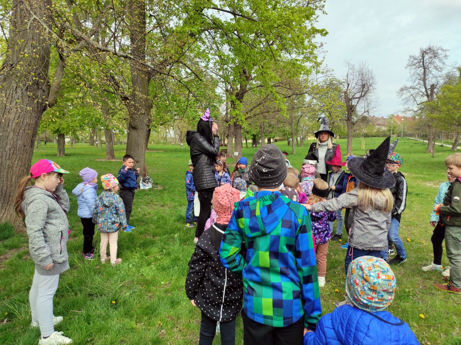 Poté děti čekala čarodějnická stezka se žáky z 1.C. Stezka se konala v parku. Starší děti byly nápomocni menším, četly jim úkoly, byly ohleduplní jeden k druhému, navzájem spolu spolupracovaly a navázaly nová přátelství.