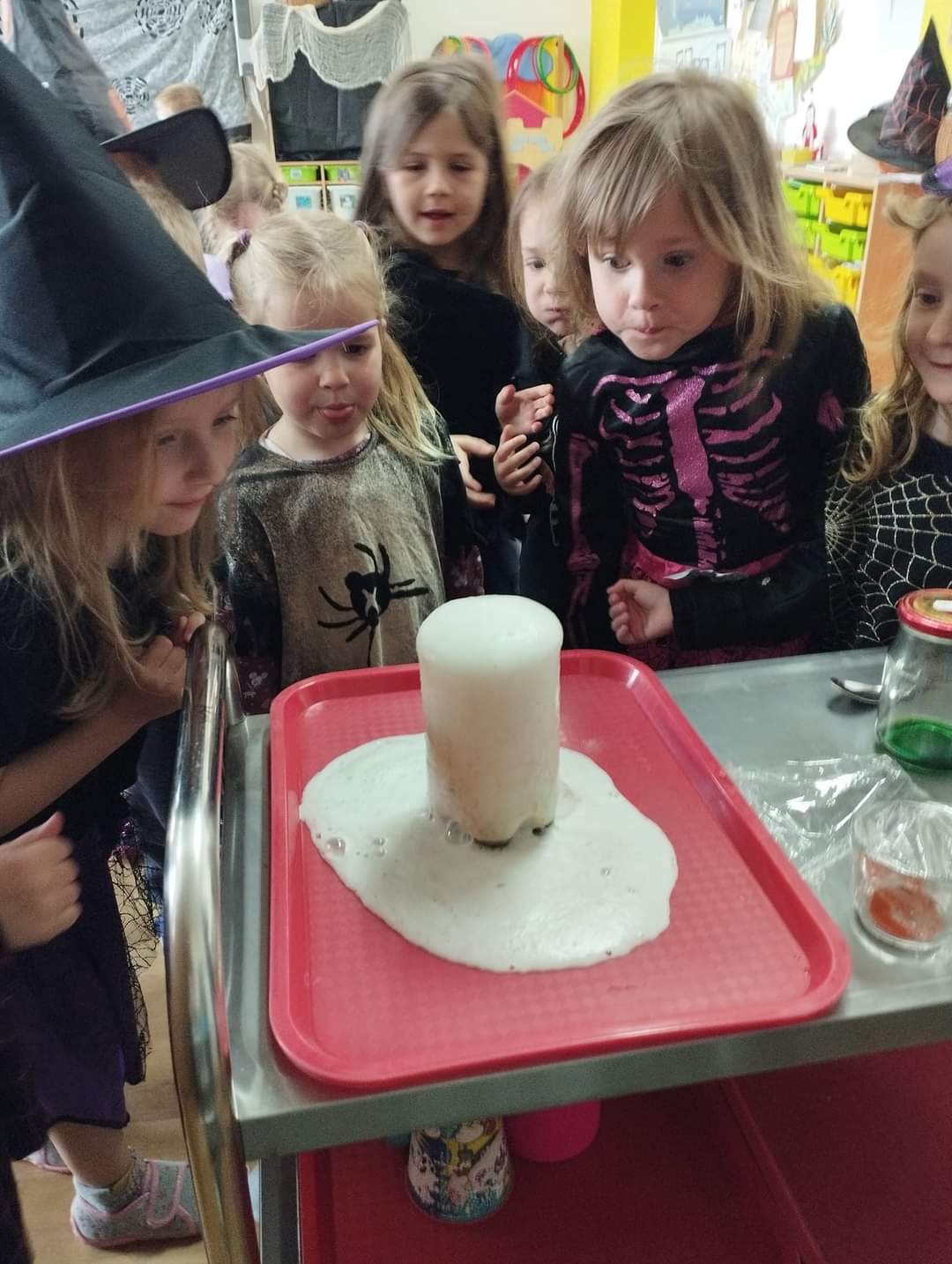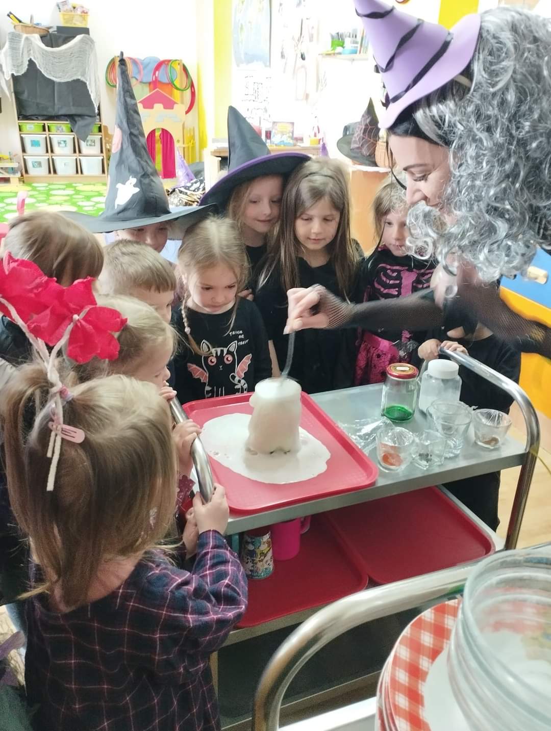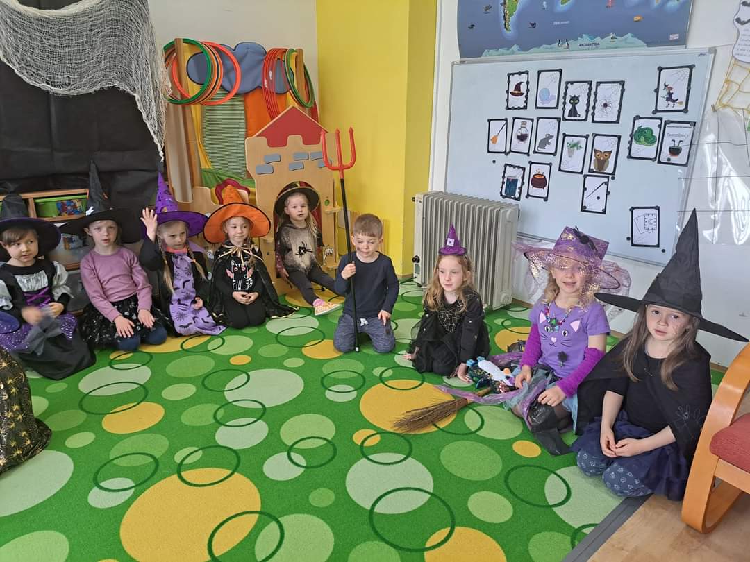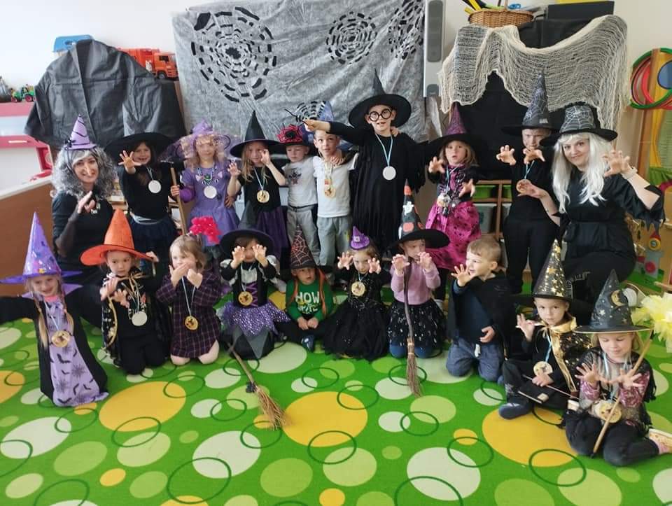 Děti se převlékly do čarodějnických obleků a společně si zadováděly za doprovodu hudby. Připraveny byly různé úkoly - výlov pavouků, skládání zalamovaných čarodějných obrázků, let na koštěti, vaření a ochutnávka lektvarů, diskotéka.