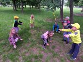 Pro děti byla připravena dobrodružná hra s hledáním pokladu. Pomocí barevných fáborků se vydaly na cestu plnou zábavných úkolů, které musely splnit, aby se dostaly blíž k cíli. Děti s nadšením skákaly, hádaly, zpívaly a plnily různé výzvy. Na konci jejich výpravy je čekala truhla s pokladem – sladkosti a malé dárky, které jim vykouzlily úsměv na tváři.
