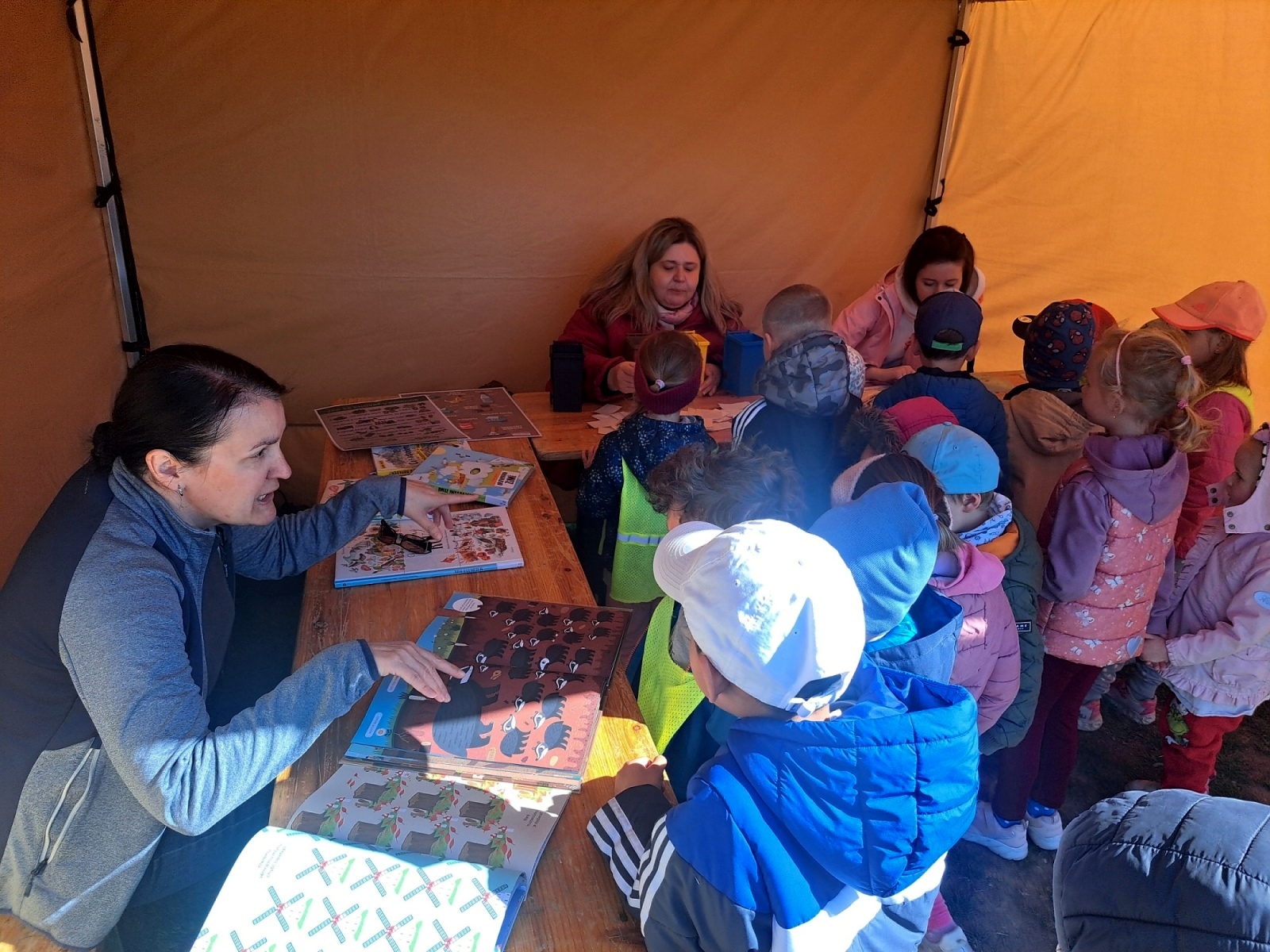 Vyzkoušely si tvoření, ozdobily si klacík svým jménem, poslechly myslivecké trubače a zasadily si vlastní stromeček do kelímku. Seznámily se s policejní výbavou a vozem, nahlédly do života včel a hravou formou třídily odpad v programu „Tonda Obal“ a spousta dalších aktivit. Akce se dětem velmi líbila.