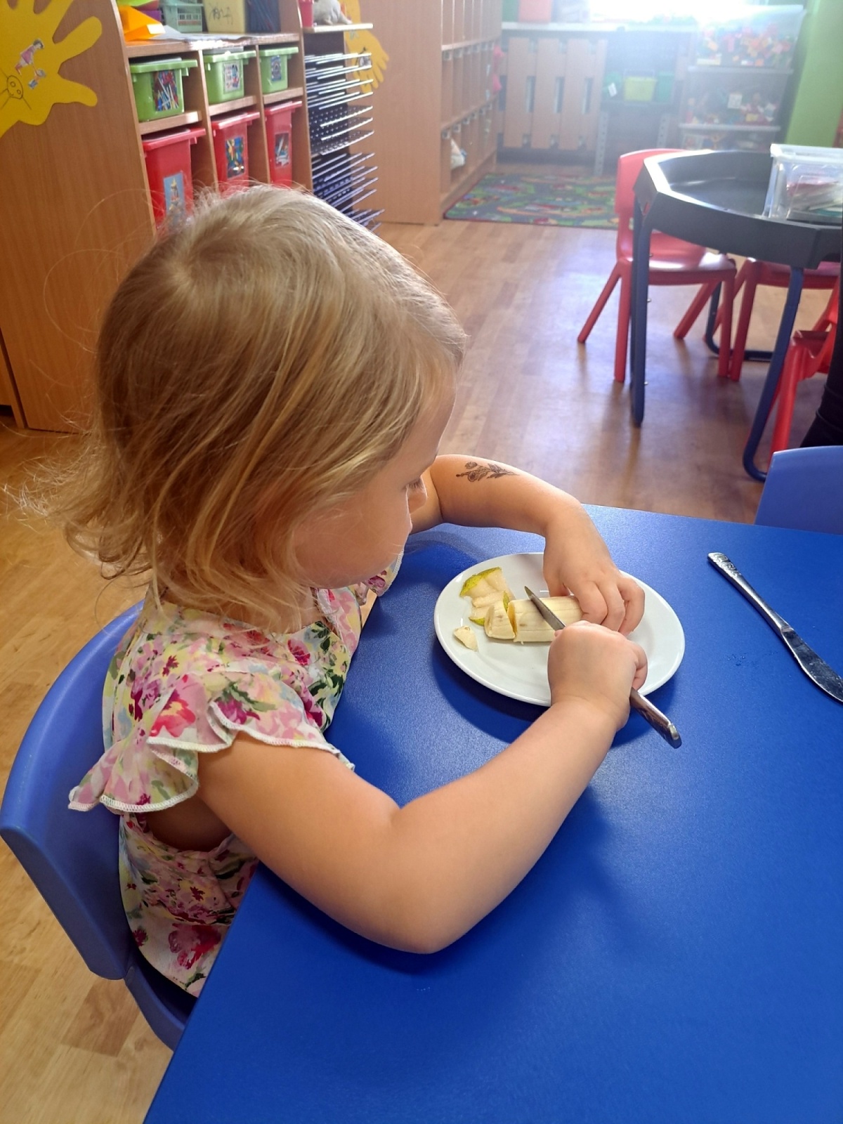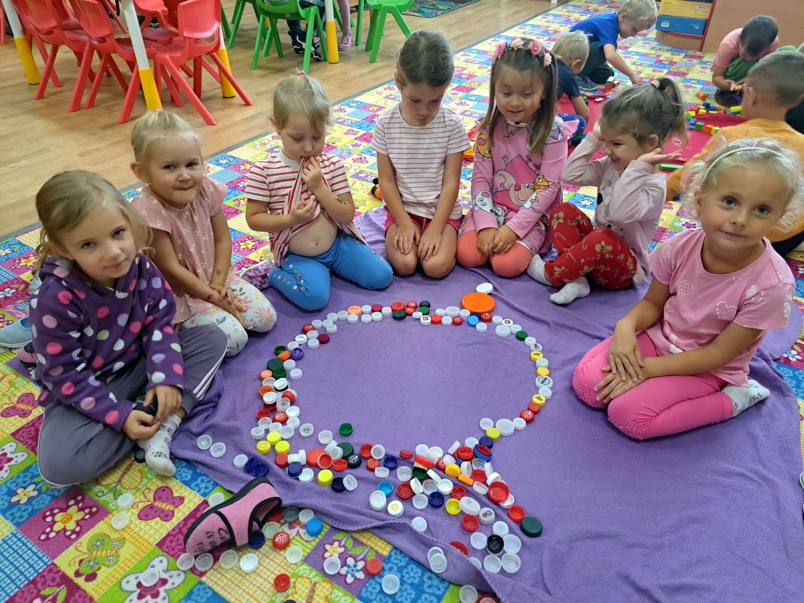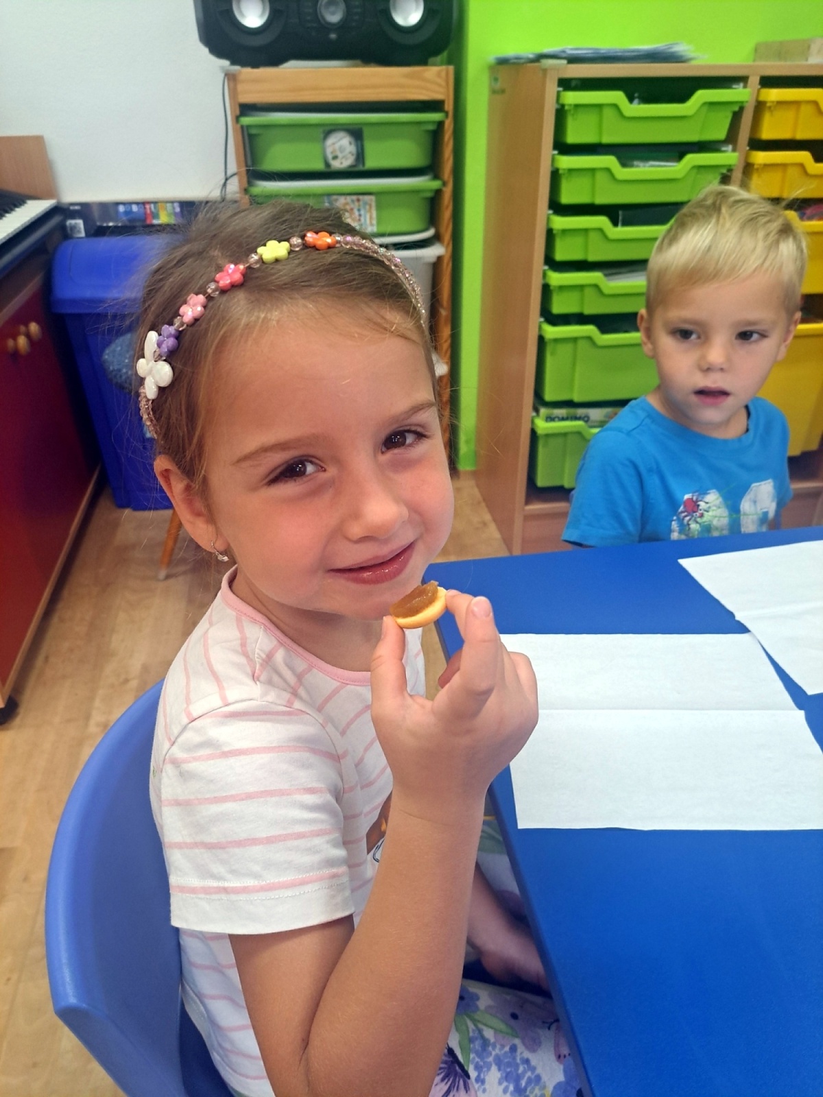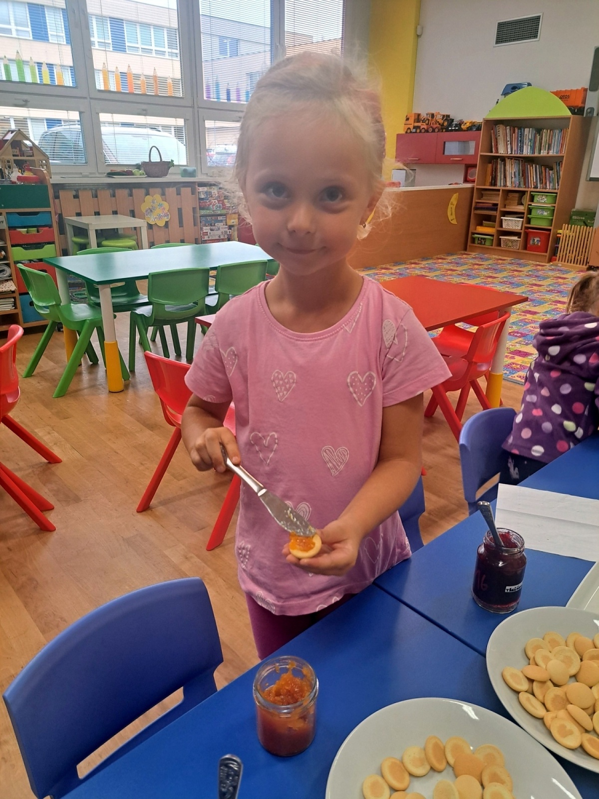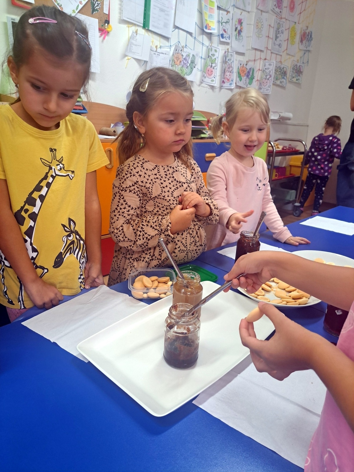 Poznávali jsme ovoce a zeleninu, ochutnávali jsme různé druhy marmelád a společně krájeli ovoce na ovocný salát. Děti přinesly své výpěstky ze zahrádek, ze kterých jsme si udělali výstavku. Společně jsme si zahráli i dramatizaci pohádky O červené řepě.