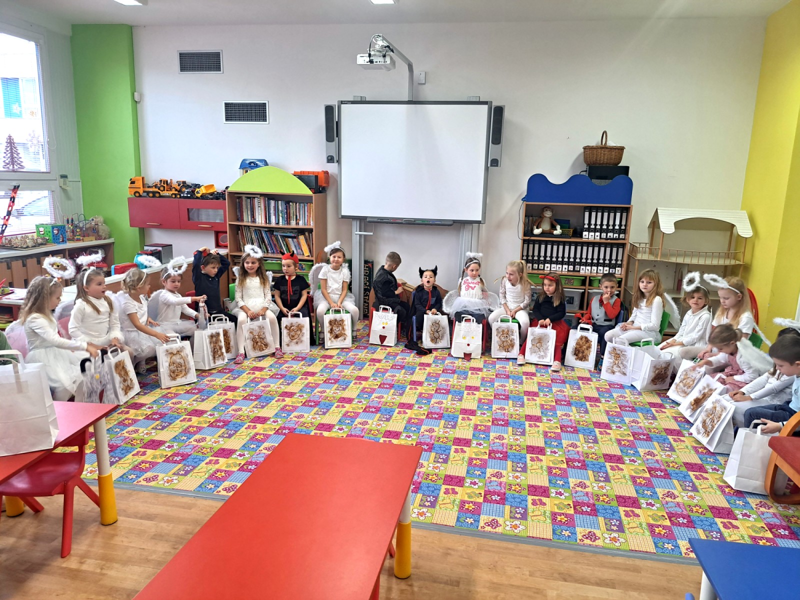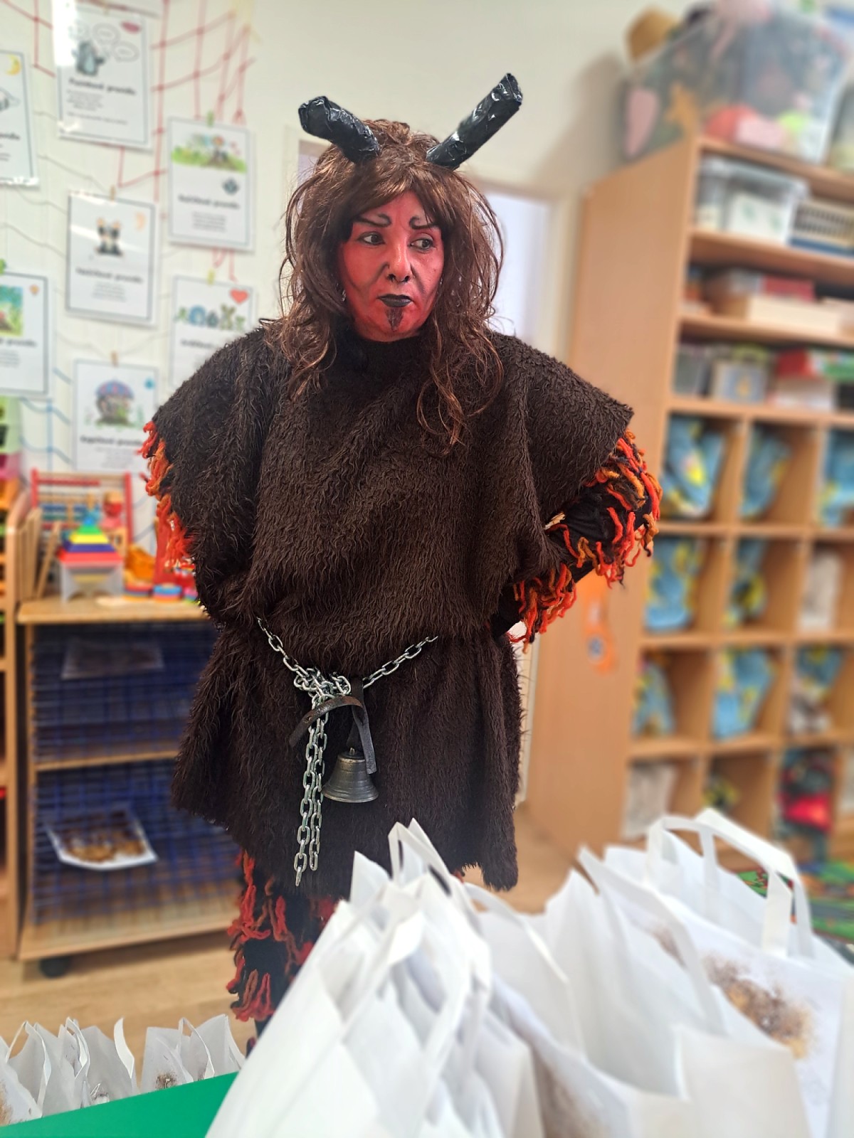 Za krásné zpívání dostaly děti čertovskou odměnu. Čert předvedl dětem taneček a pěkně je pobavil. Děti trojici nakonec zamávaly a s úsměvy se rozloučily.