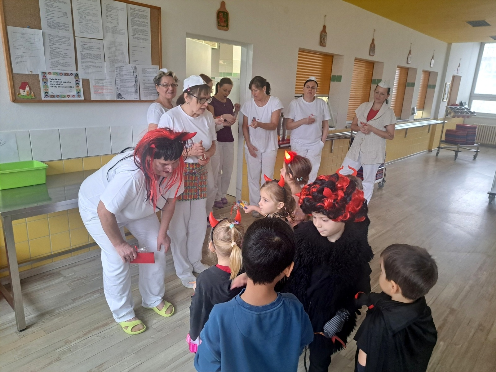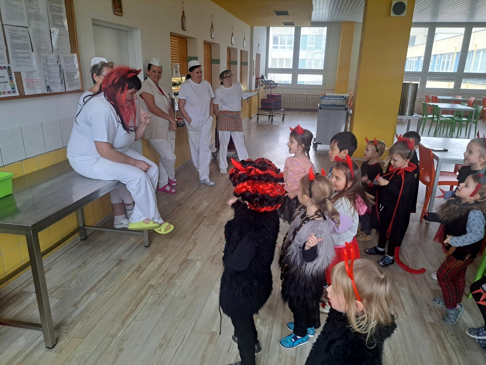 Po odchodu Mikuláše jsme se společně vydali na malý slavnostní průvod po celé škole. Děti zazpívaly v kuchyni našim milým kuchařkám, pozdravily paní sekretářku, paní účetní i mzdovou, paní ředitelku i paní zástupkyně, kterým udělaly písničkou velkou radost.