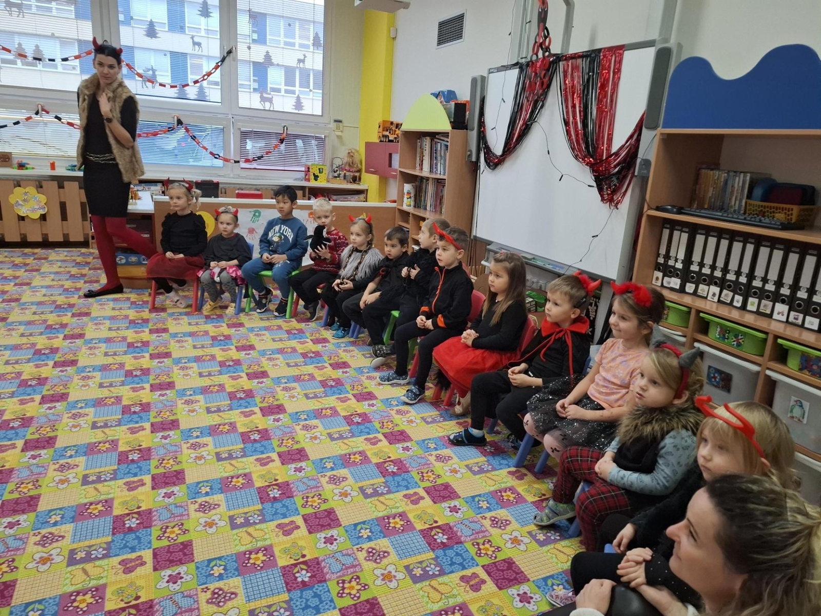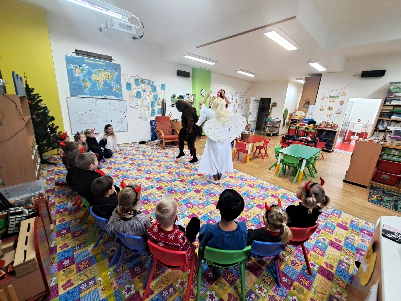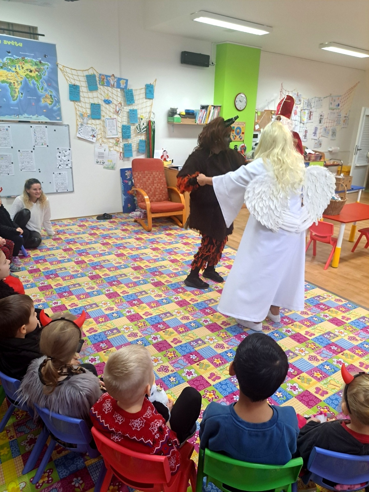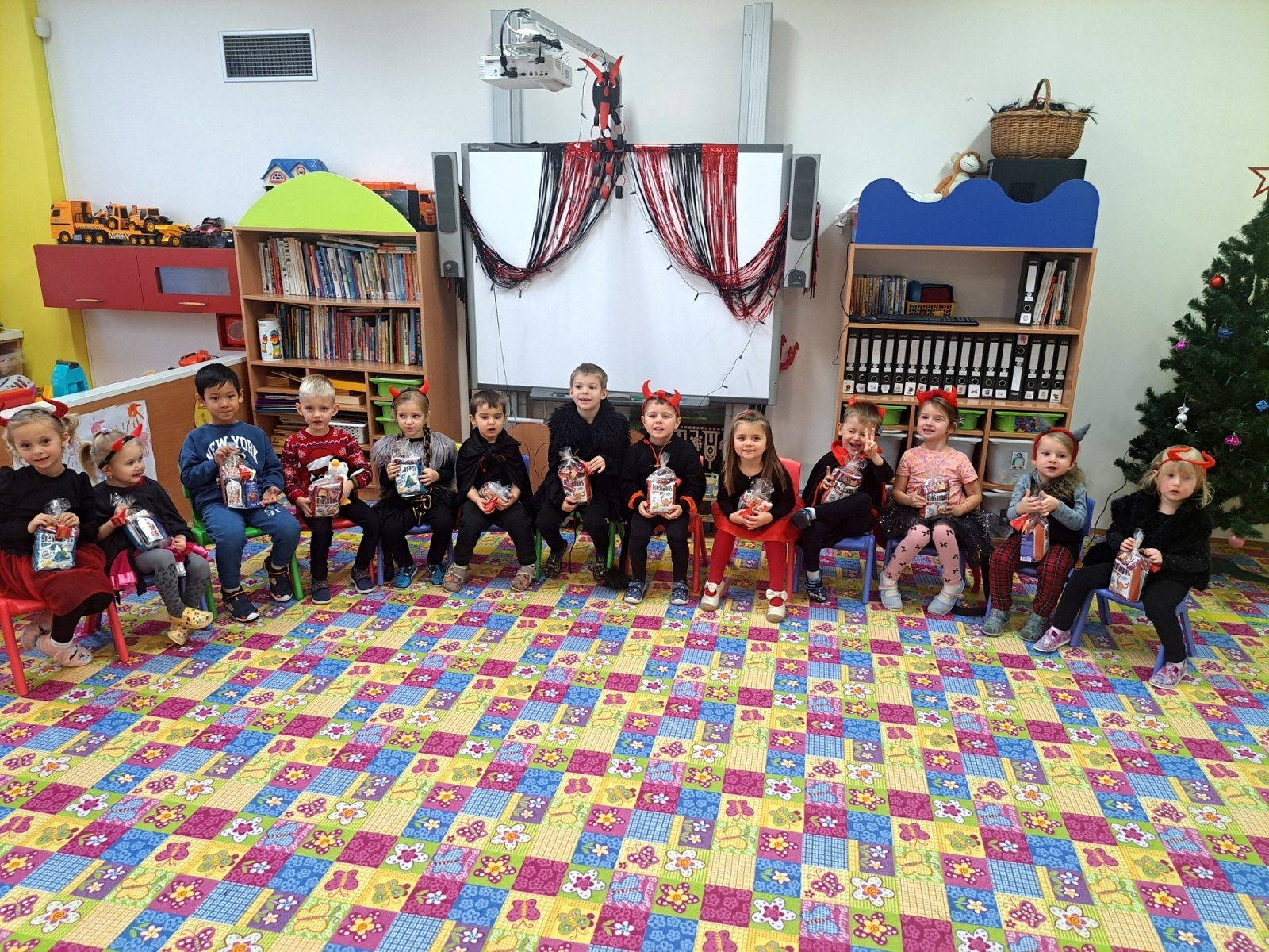 Mikuláš každého s úsměvem pohladil a pochválil – protože letos byly děti opravdu všechny hodné. Anděl rozdával krásné balíčky a přinesl do třídy klid a radost. A Čert? Toho nebylo vůbec zapotřebí, ten mezitím jen pohodlně odpočíval v křesle, protože tentokrát neměl vůbec žádnou práci.