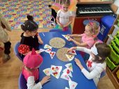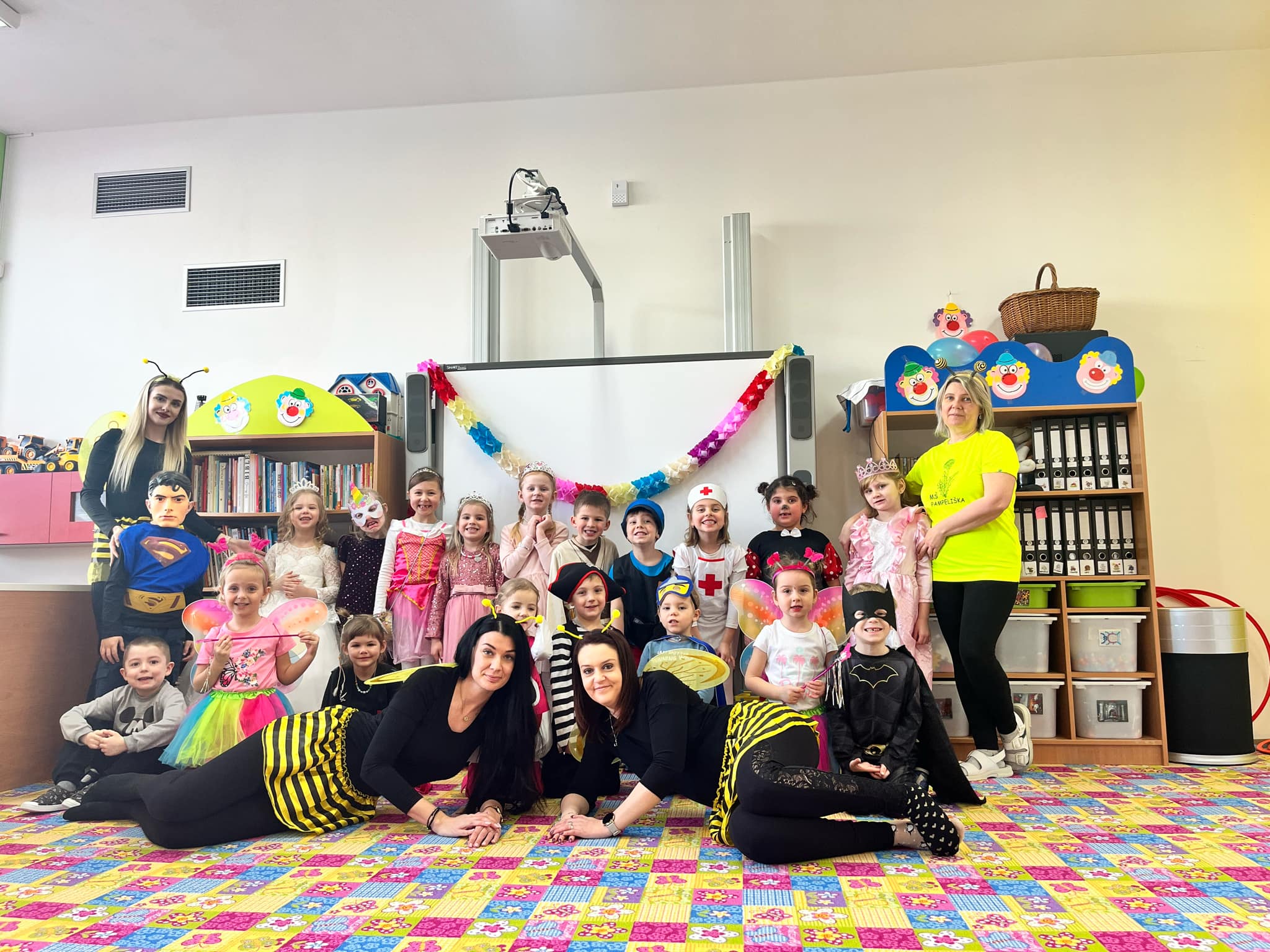 Veselí v MŠ panovalo už od samého rána. Do školky přicházely děti s úsměvem a radostí v nejrůznějších kostýmech. Masopust proběhl za zpěvu, tance, bohaté hostiny a zábavných her. Nechyběla ani procházka po škole, kde děti zazpívaly a rozveselily paní učitelky i žáky.