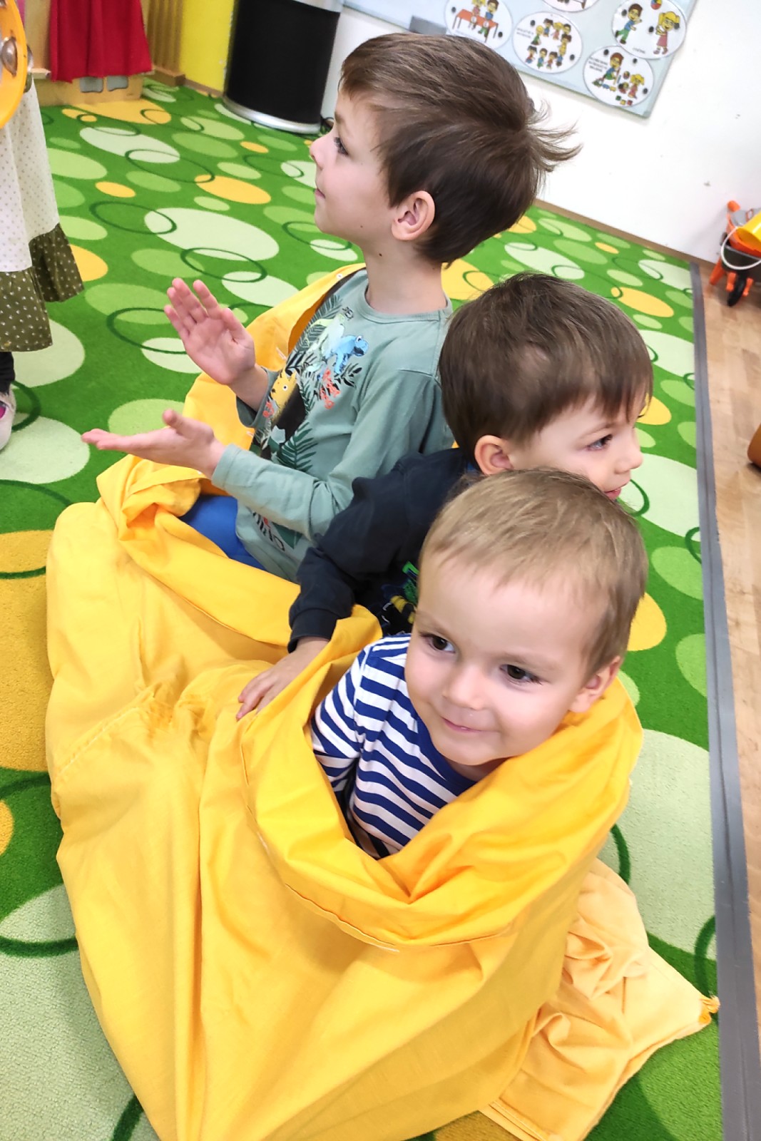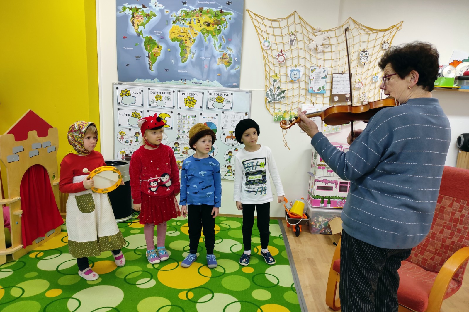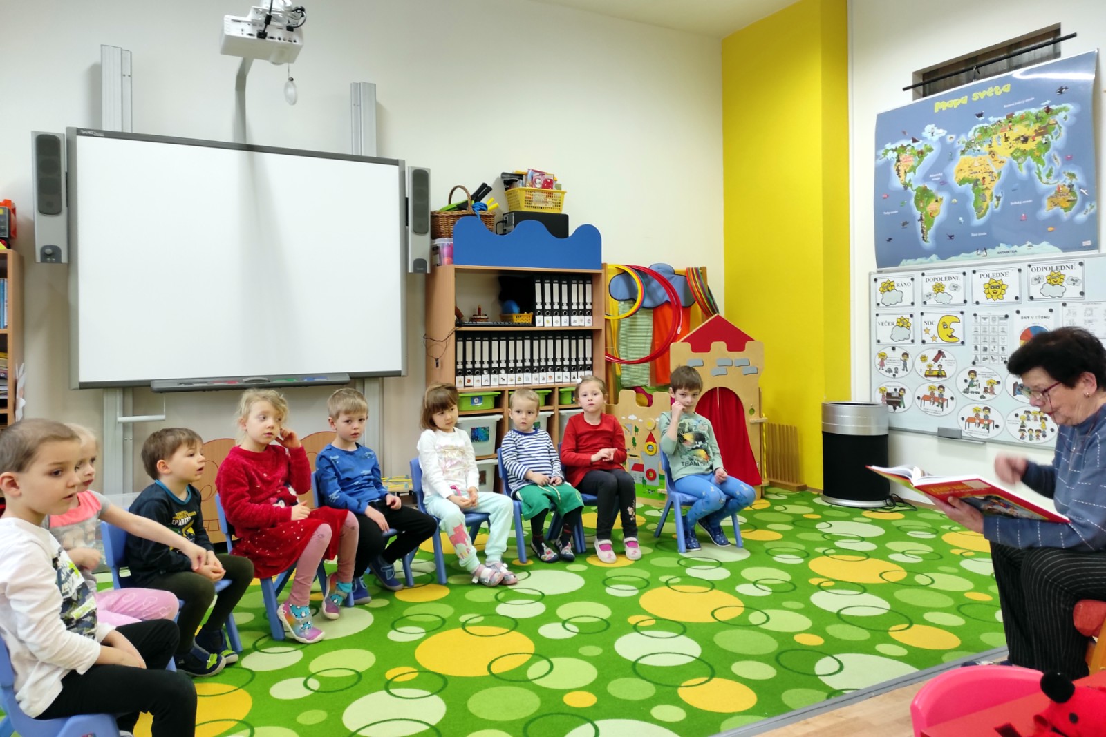 Paní Stehlíková měla připravenou pohádku, která probíhala za doprovodu písní a básní. Po vyslechnutí si děti pohádku zdramatizovaly. Pohádka se dětem líbila i díky připraveným pomůckám, které s sebou babička přinesla.