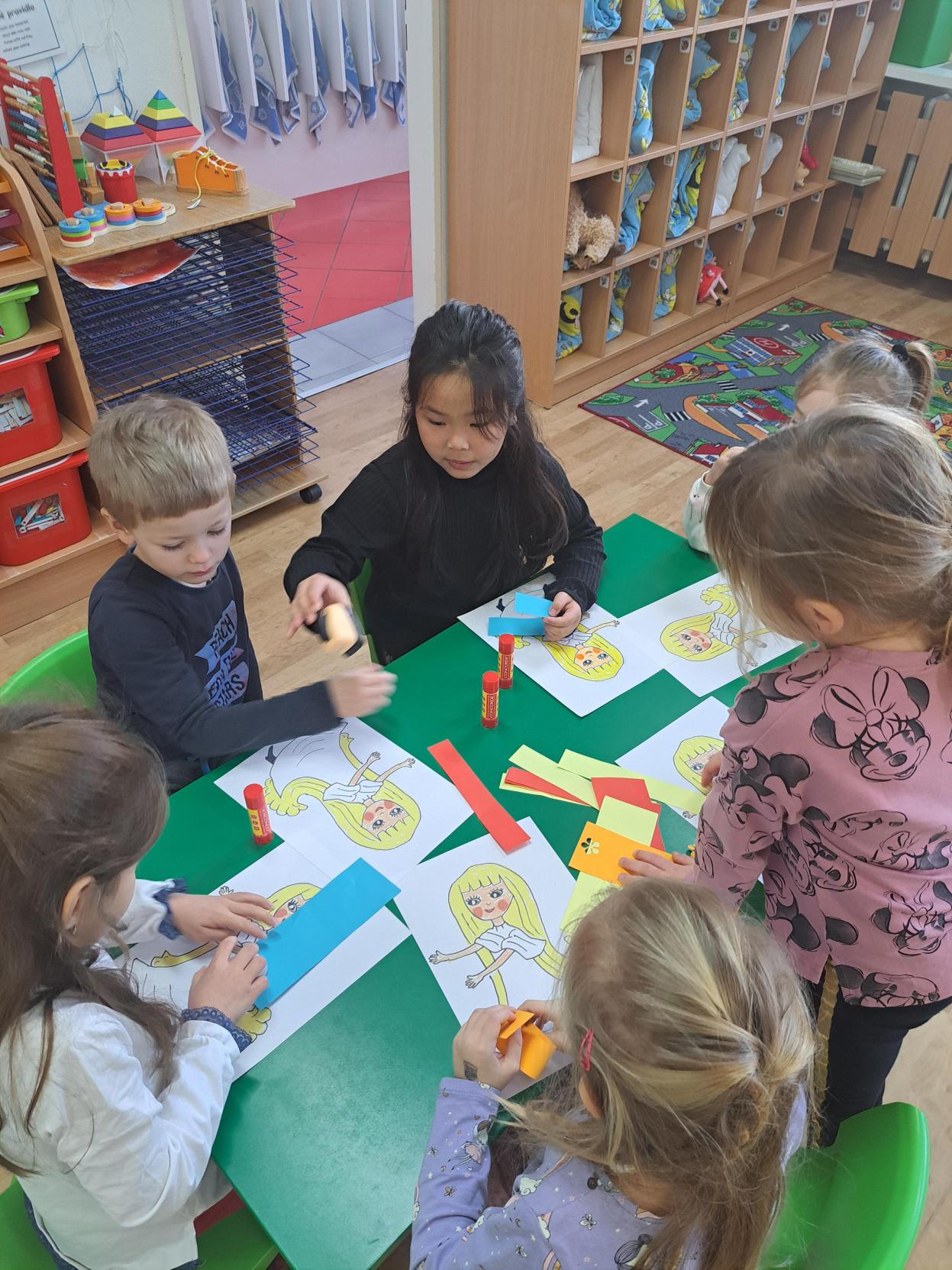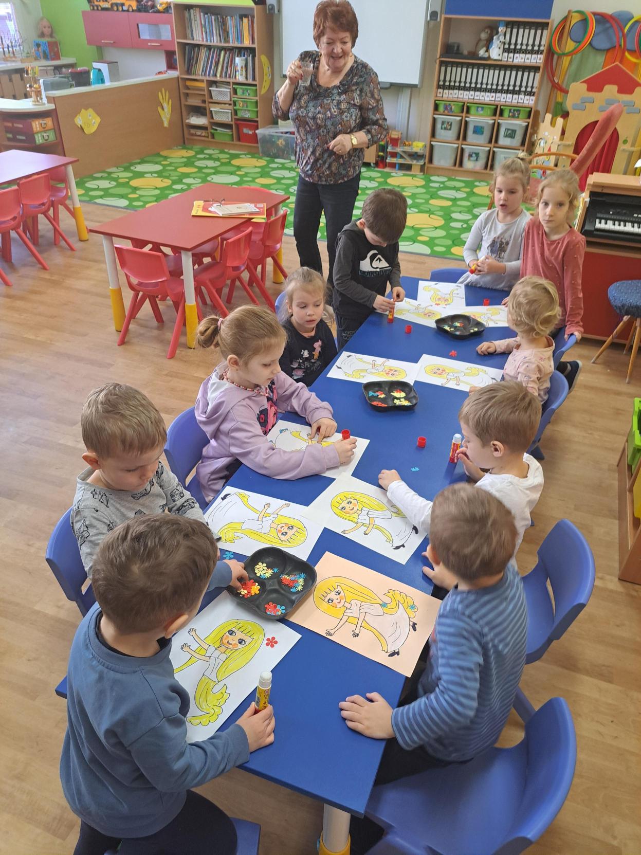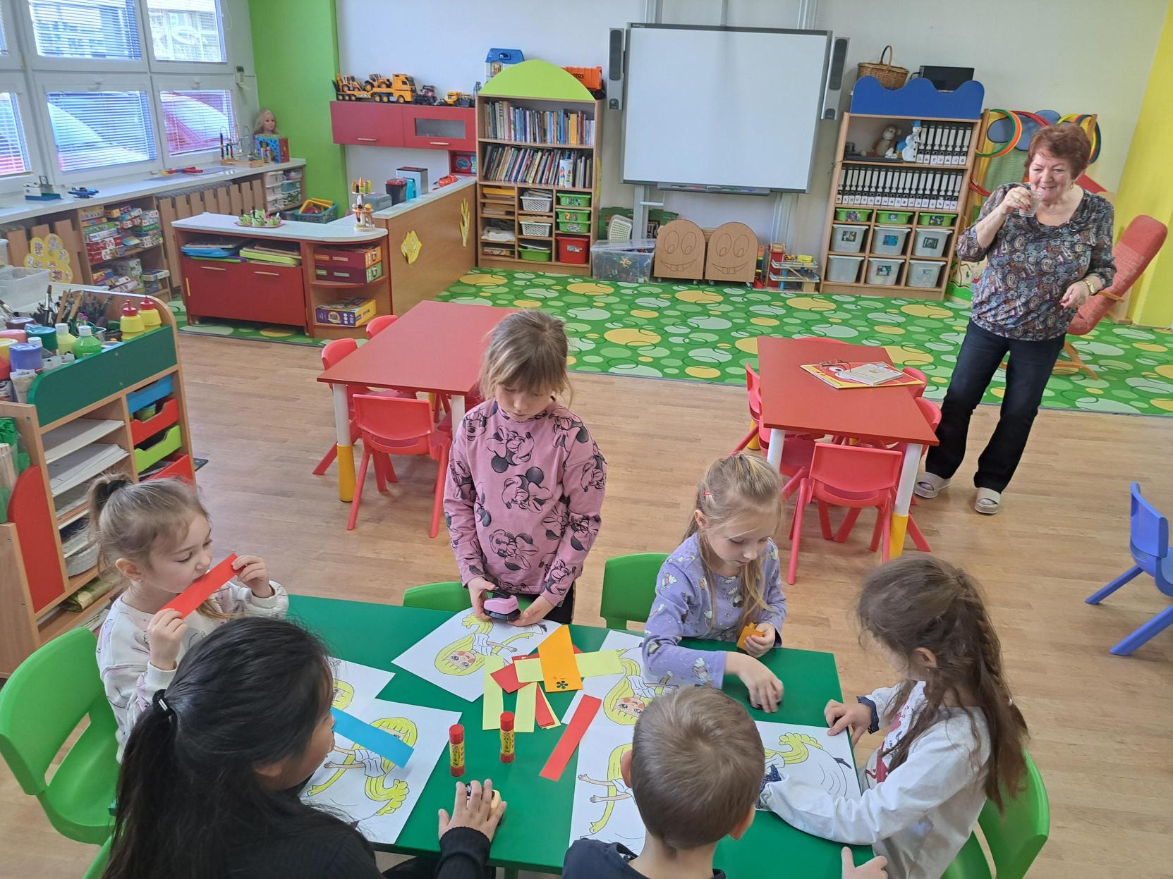 Babička Modráčková přečetla dětem pohádku z knížky "Říkání o víle Amálce". Děti pak pracovaly u stolečku s omalovánkou.